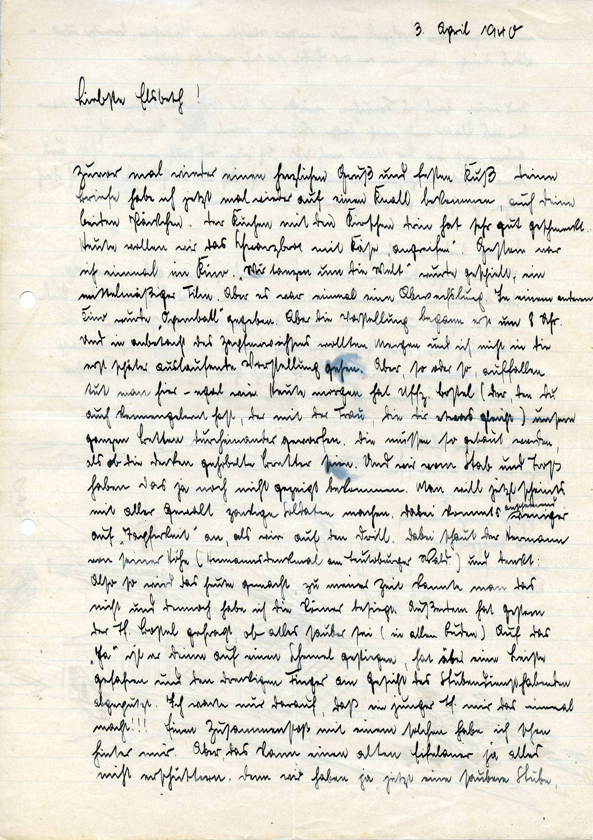 Johannes Ließem an seine Frau Elsbeth, 3. April 1940