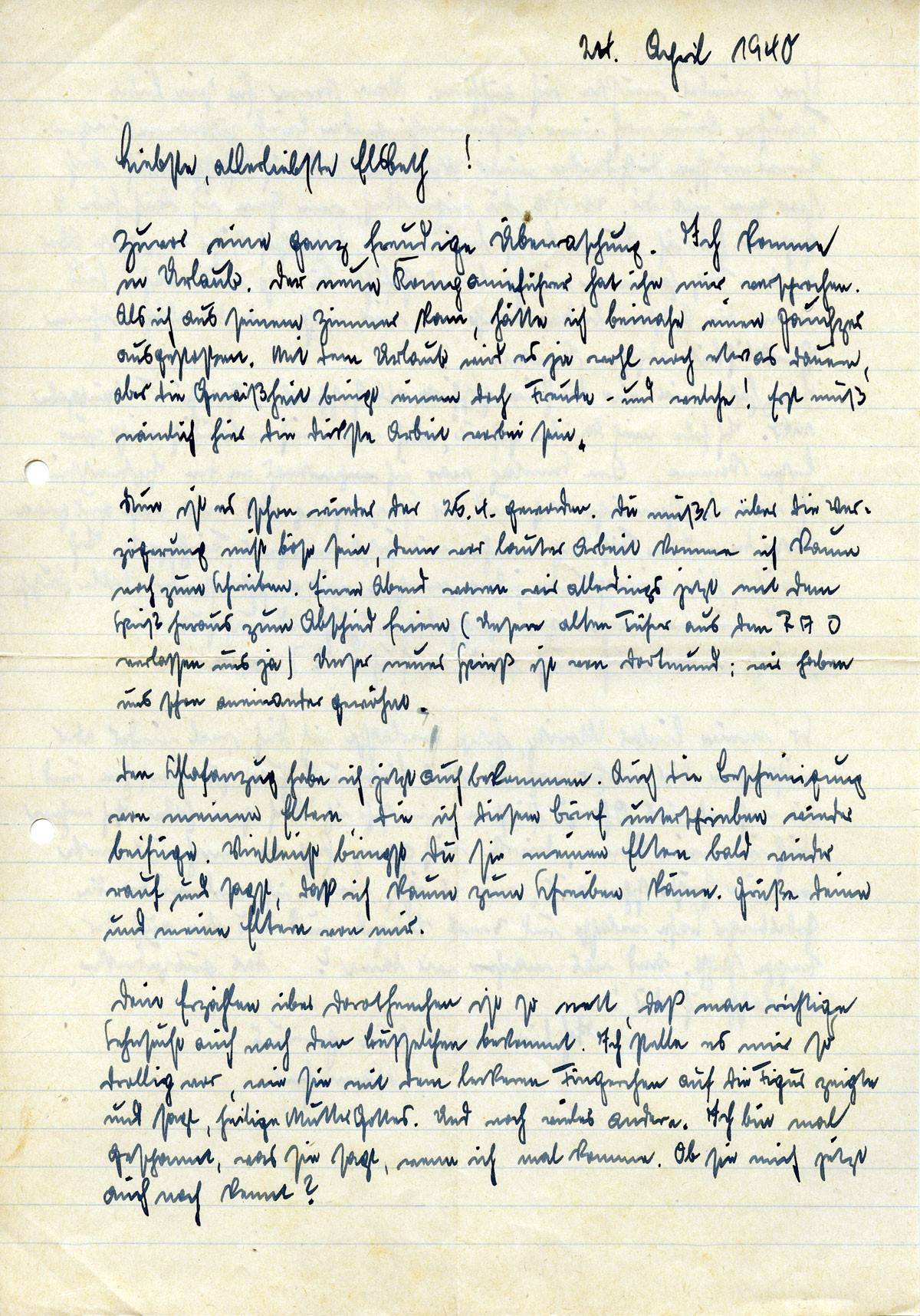 Johannes Ließem an seine Frau Elsbeth, 24. April 1940