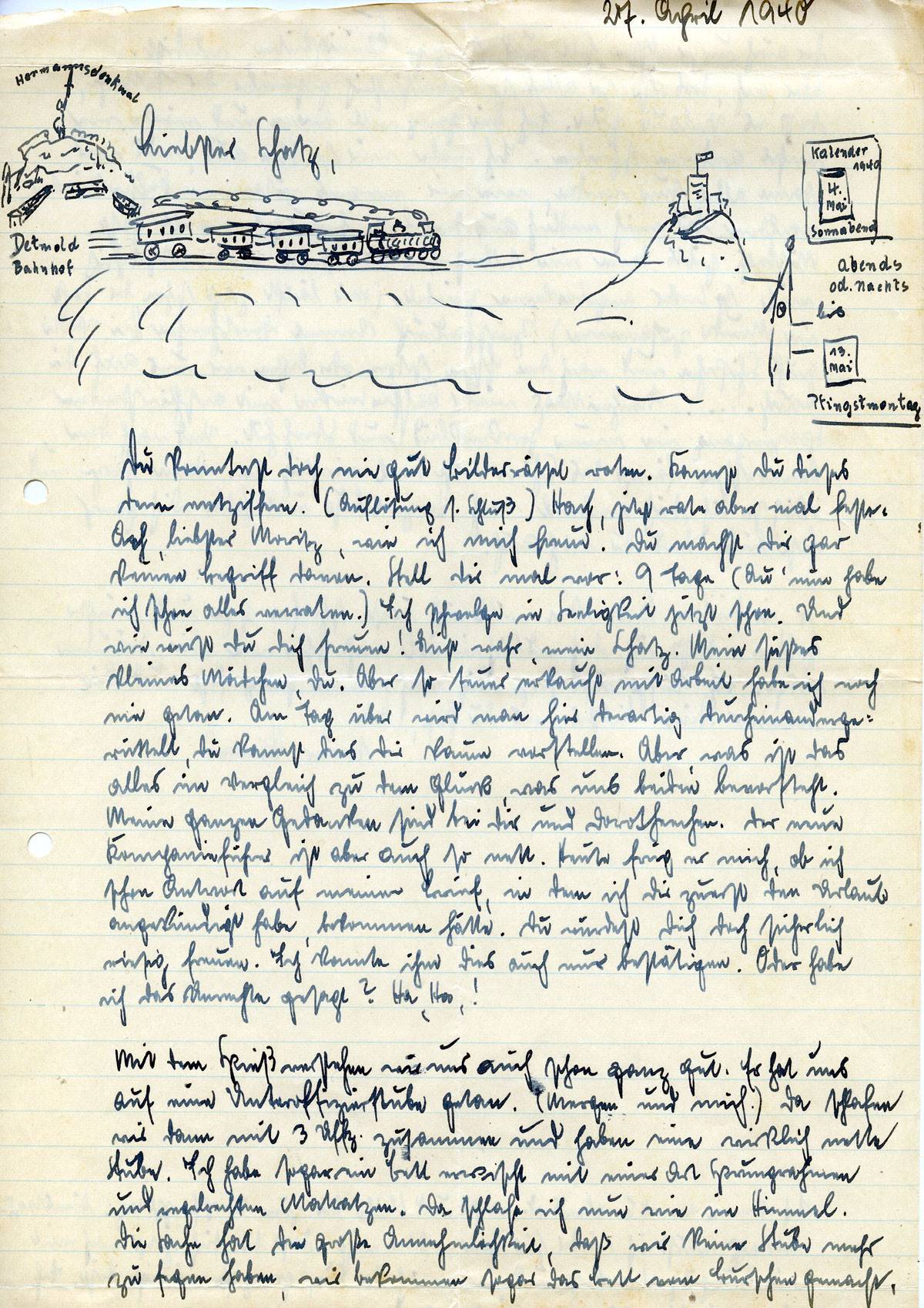 Johannes Ließem an seine Frau Elsbeth, 27. April 1940