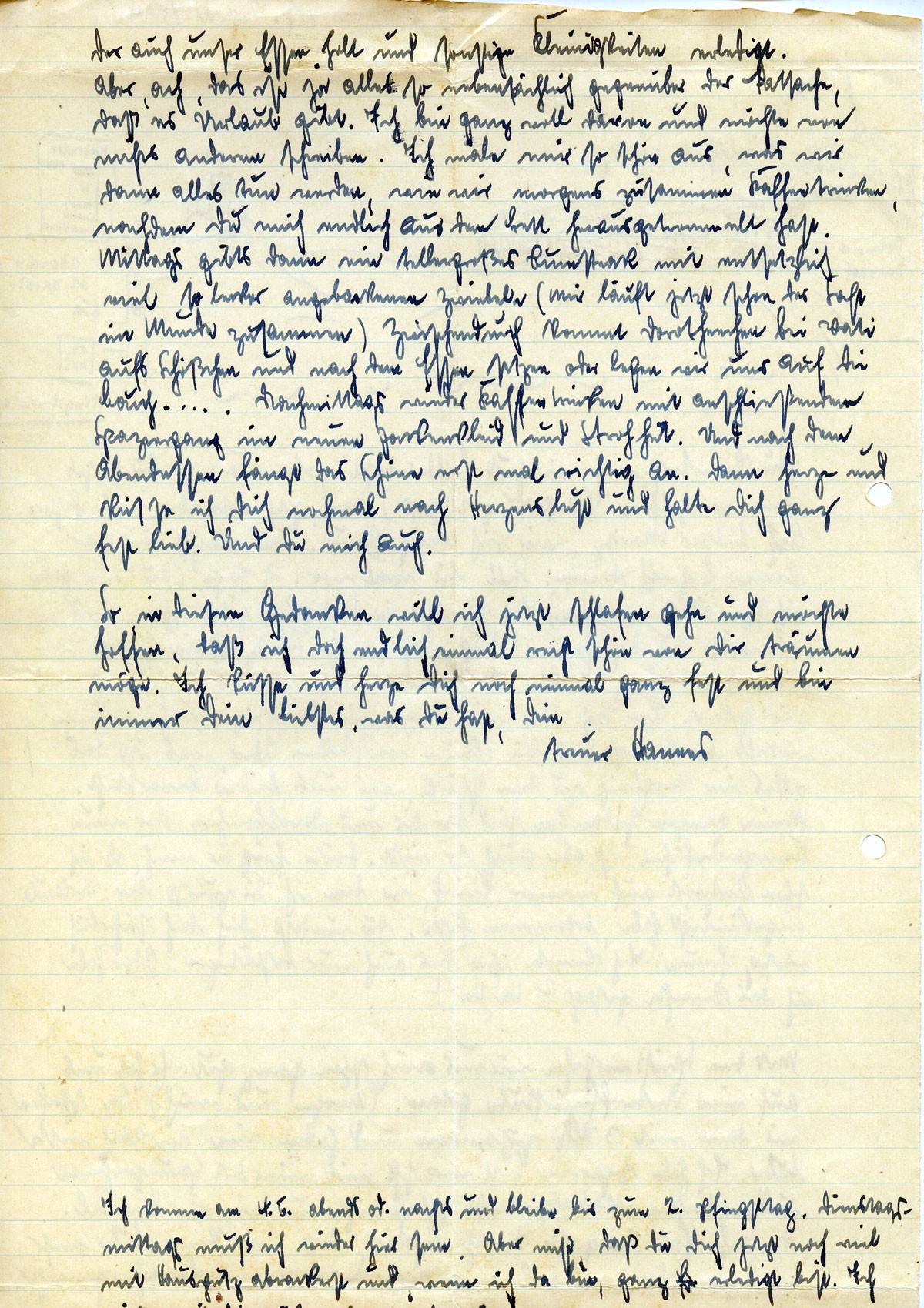 So, in diesen Gedanken will ich jetzt schlafen gehen und möchte hoffen, daß ich doch endlich einmal recht schön von Dir träumen möge. Ich küsse und herze Dich noch einmal ganz fest und bin immer Dein Liebstes, was Du hast,