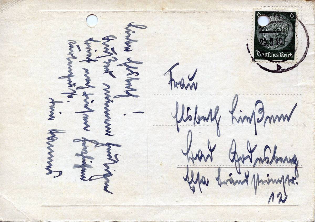 Johannes Ließem an seine Frau Elsbeth, 24. Mai 1940 Frau Elsbeth Ließem Bad Godesberg Elsa Brändströmstr. 12 Liebe Elsbeth! Außer meinem heutigen Brief noch diesen herzlichen Kartengruß. Dein Hannes