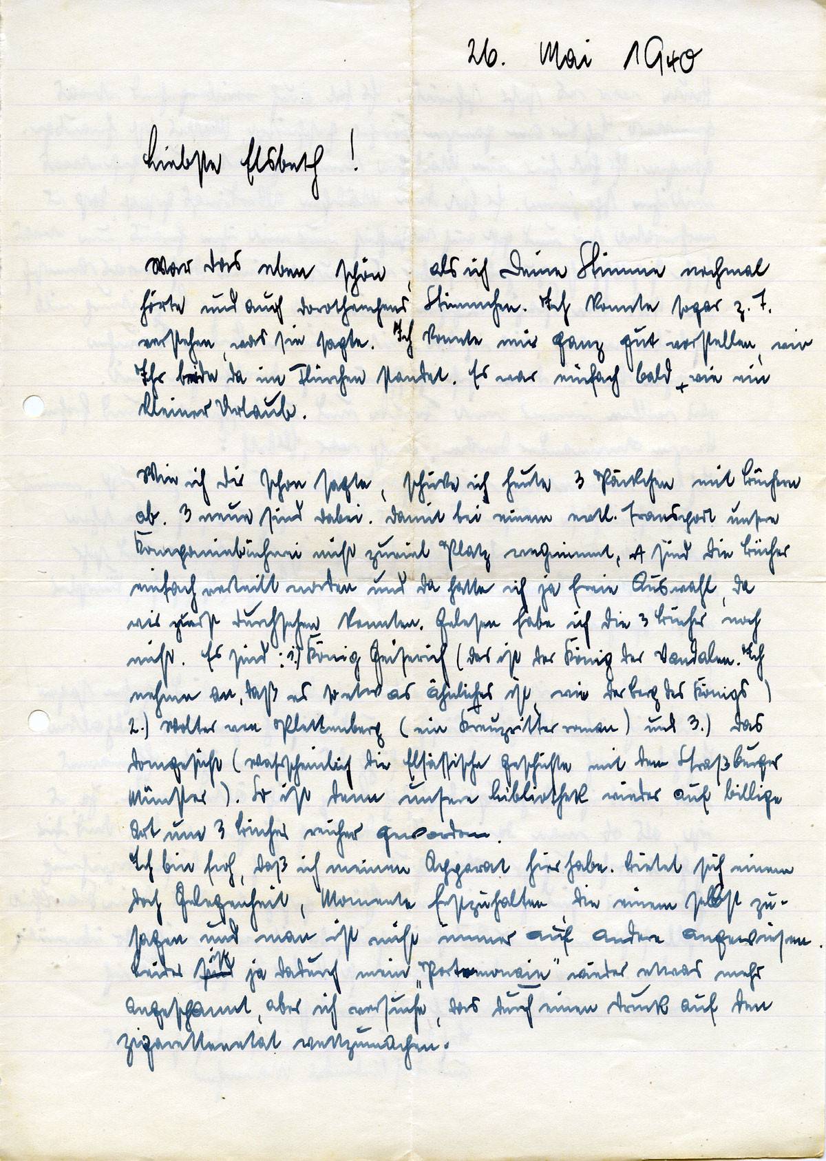 Johannes Ließem an seine Frau Elsbeth, 26. Mai 1940