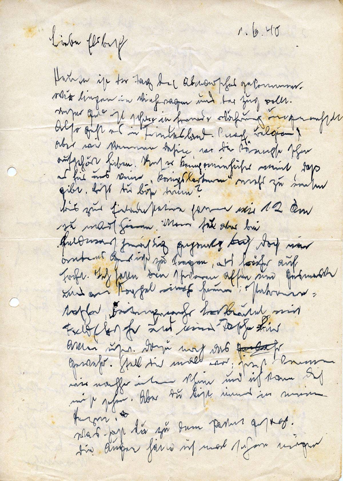 Johannes Ließem an seine Frau Elsbeth, 1. Juni 1940