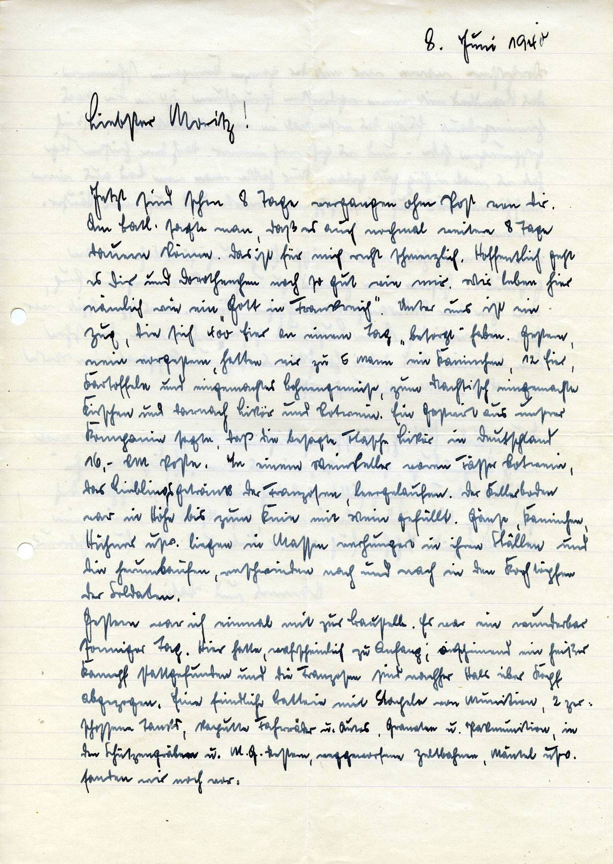 Johannes Ließem an seine Frau Elsbeth, 8. Juni 1940