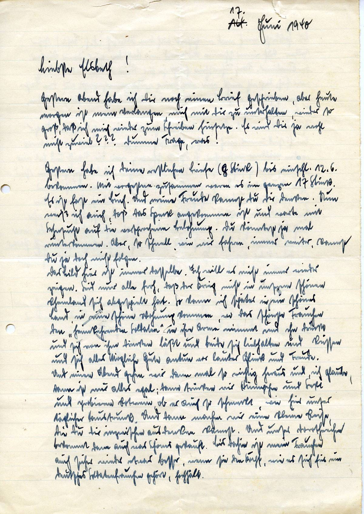 Johannes Ließem an seine Frau Elsbeth, 17. Juni 1940