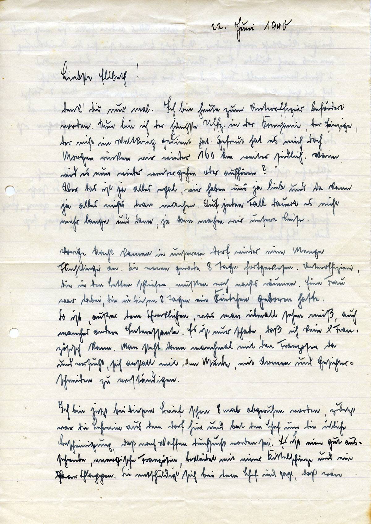 Johannes Ließem an seine Frau Elsbeth, 22. Juni 1940
