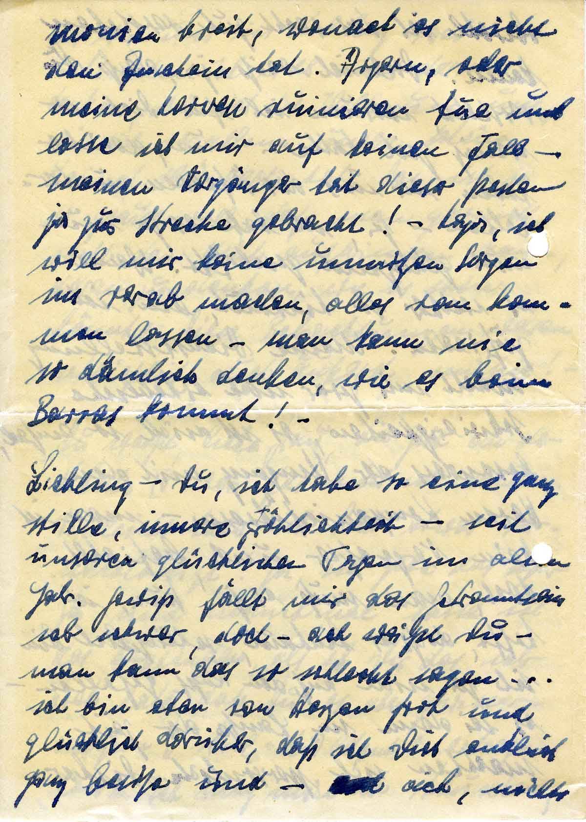 Liebling - Du, ich habe so eine ganz stille, innere Fröhlichkeit - seit unseren glücklichen Tagen im alten Jahr. Gewiß fällt mir das Getrenntsein sehr schwer, doch - ach weißt Du - man kann das so schlecht sagen ... ich bin eben von Herzen froh und glücklich darüber, daß ich Dich endlich ganz besitze und - ach, nichts