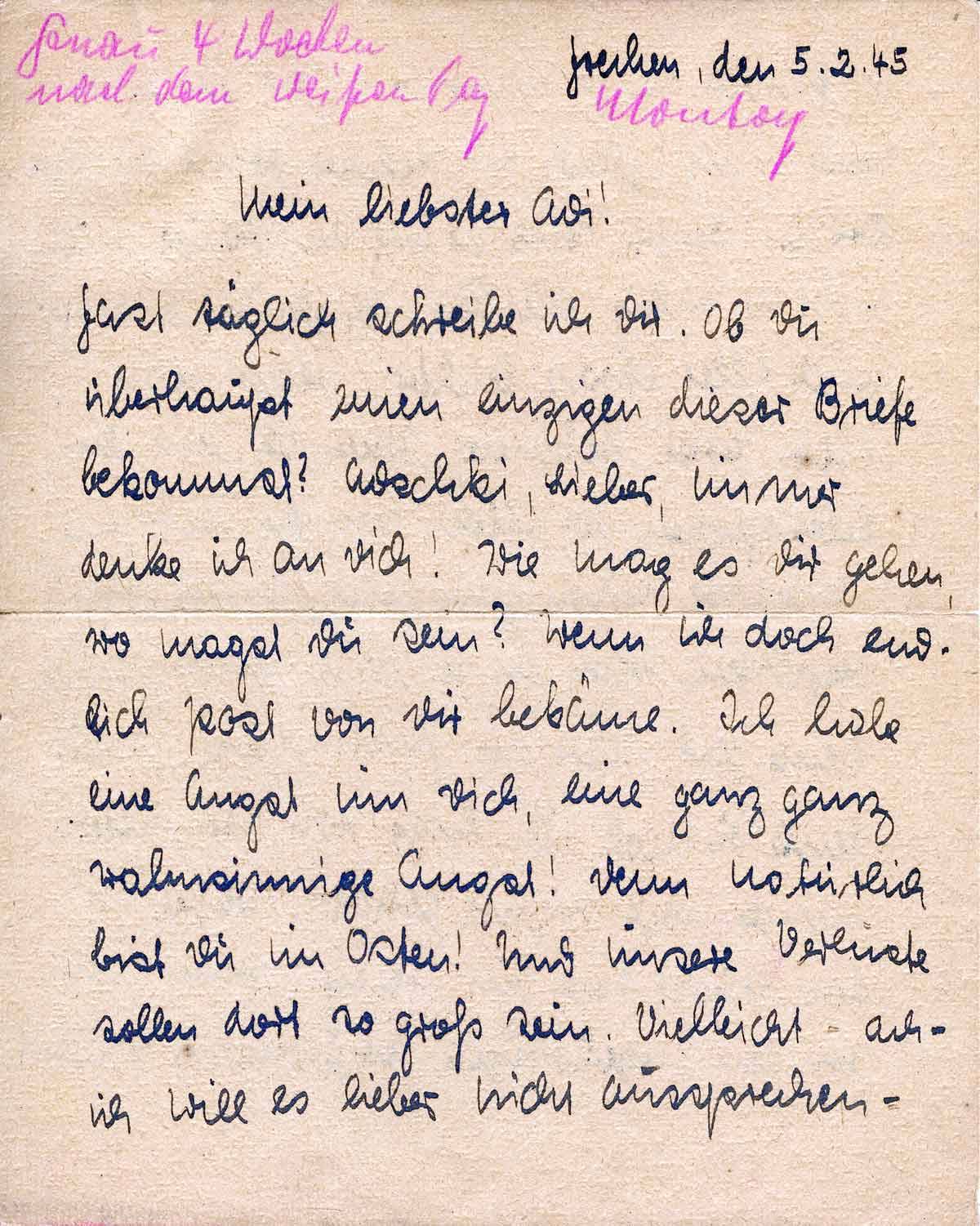 Anneliese van Kann an ihren Mann Andreas, 5. Februar 1945