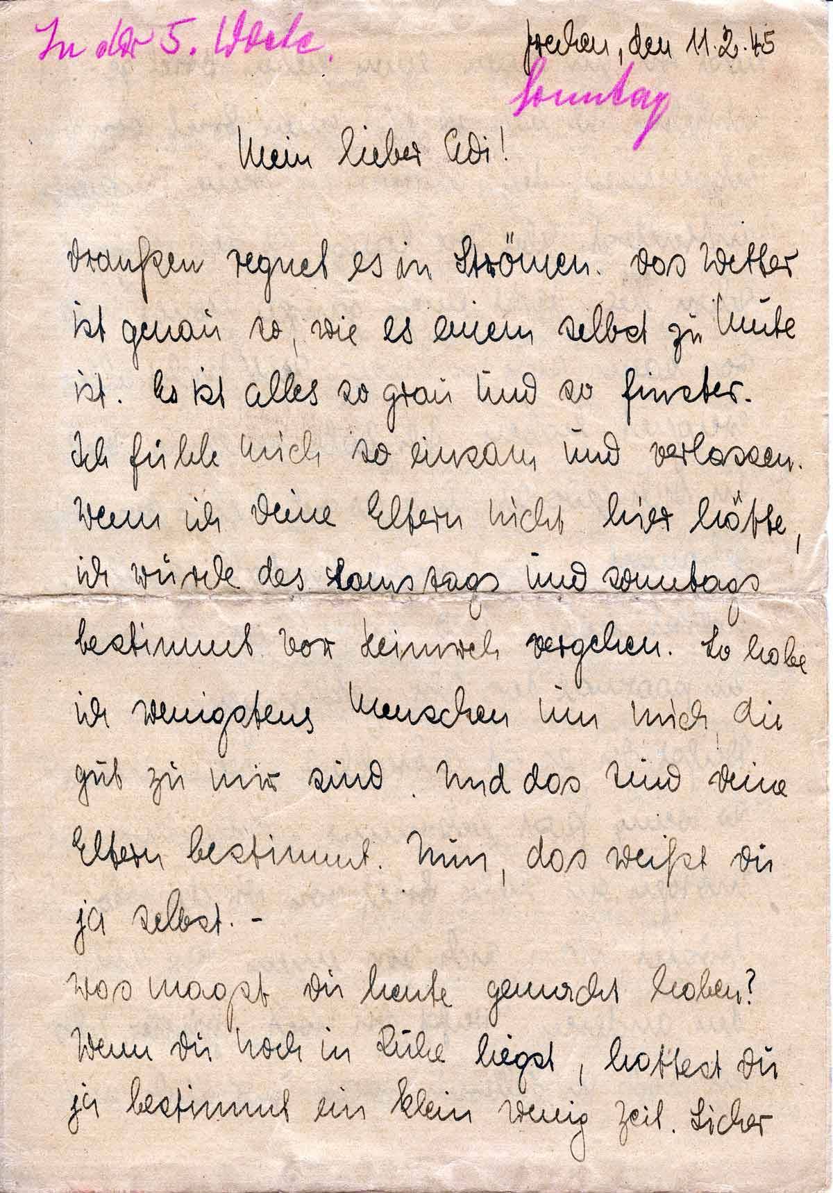 Anneliese van Kann an ihren Mann Andreas, 11. Februar 1945