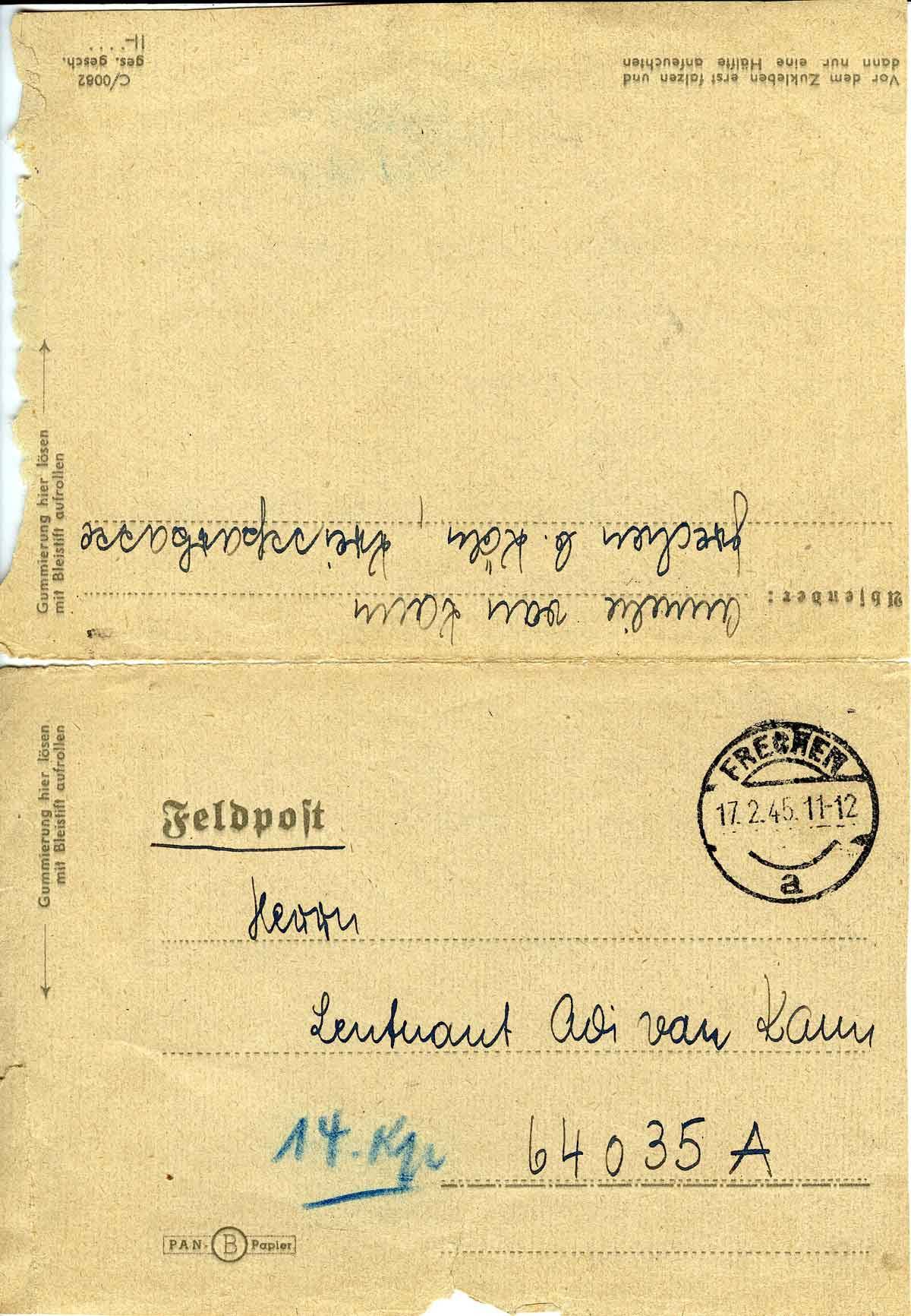 Anneliese van Kann an ihren Mann Andreas, 16. Februar 1945