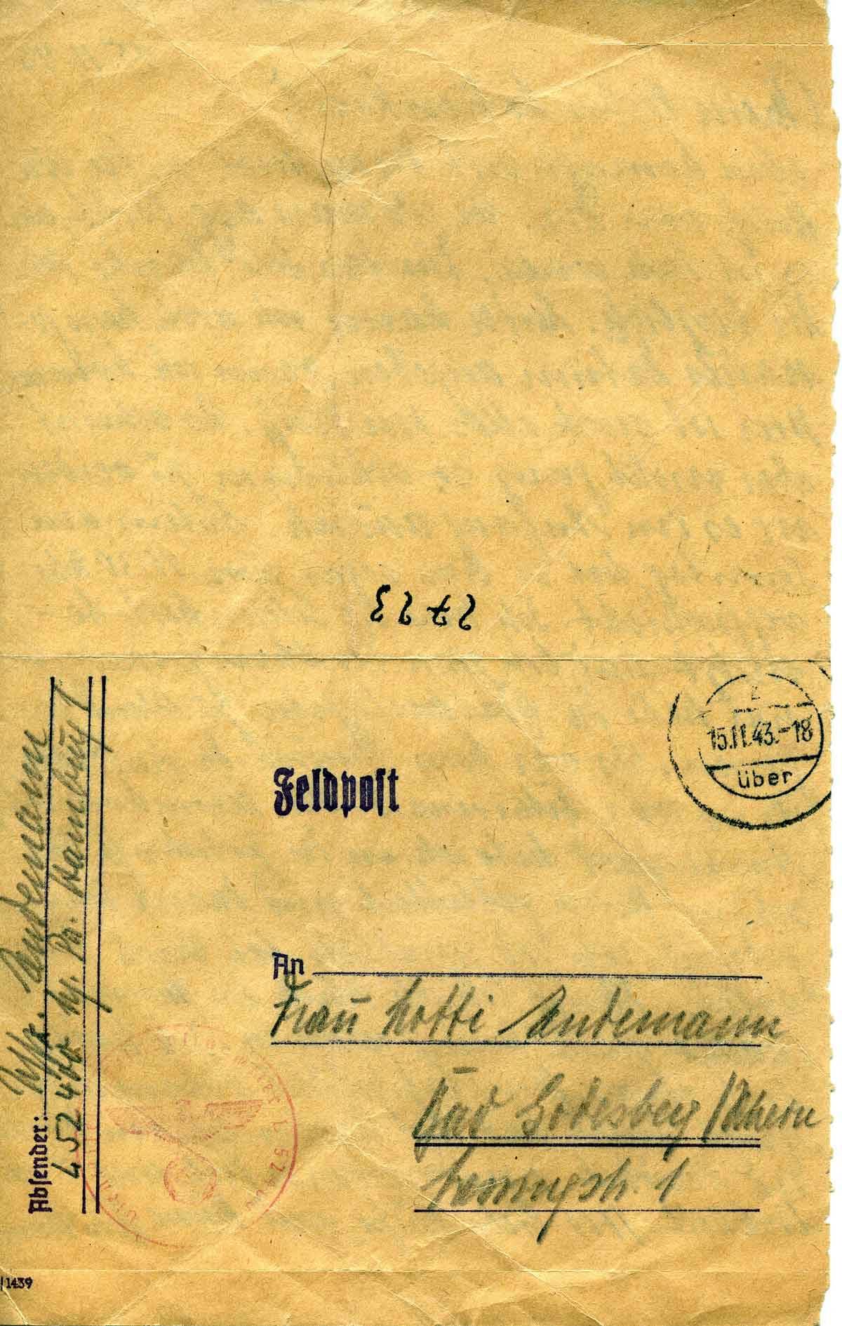 Harald Endemann an seine Frau Charlotte, 15. November 1943