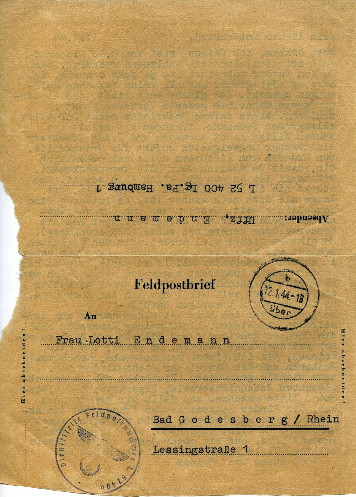 Harald Endemann an seine Frau Charlotte, 11. Januar 1944