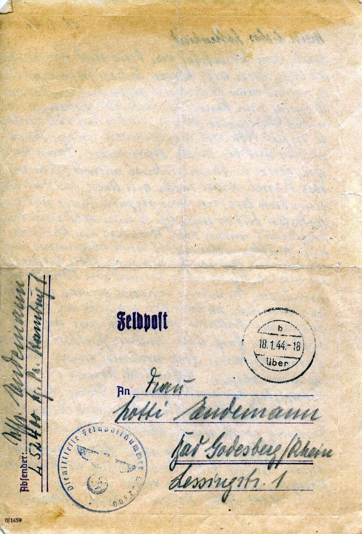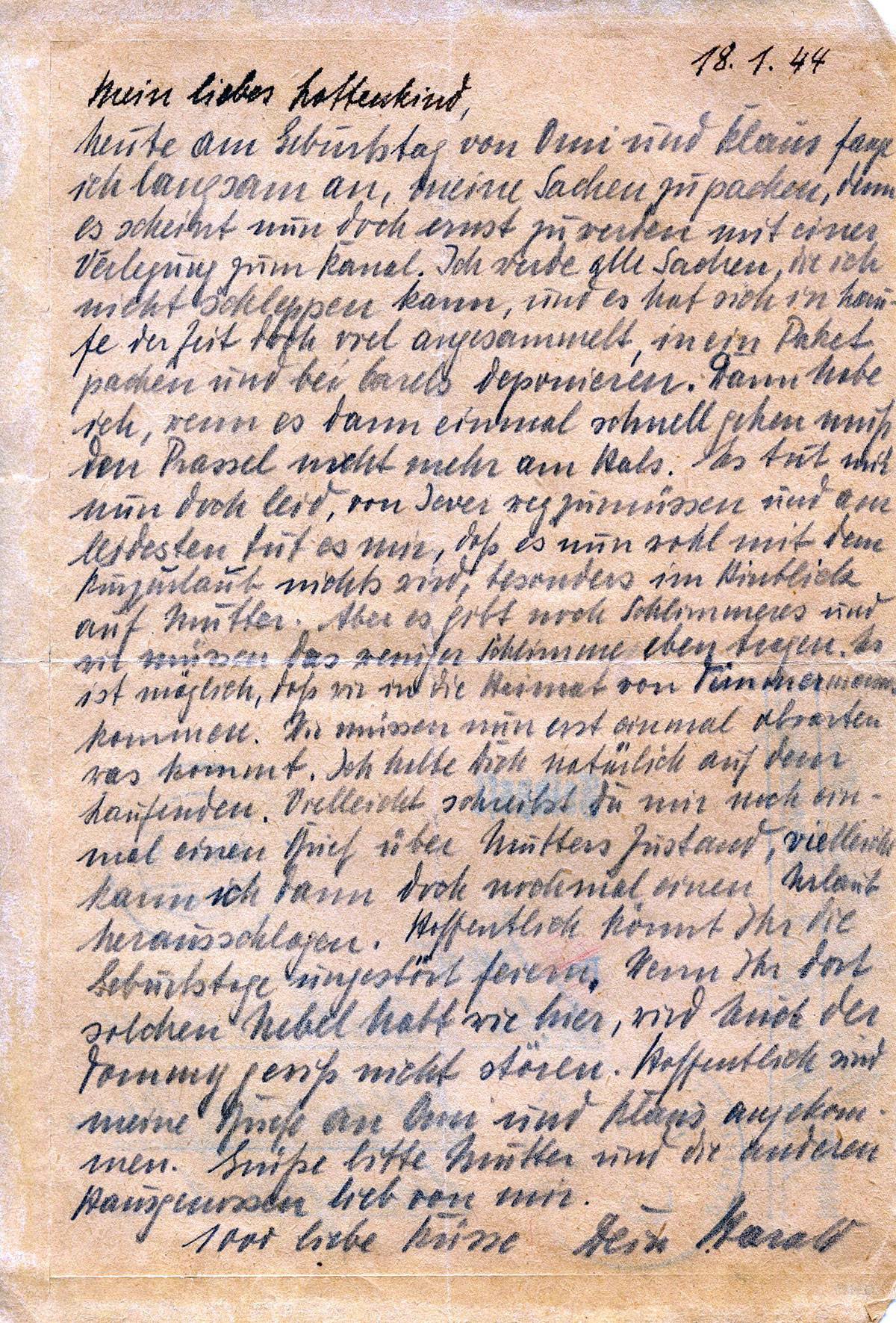 Hoffentlich sind meine Briefe an Omi und Klaus angekommen. Grüße bitte Mutter und die anderen Hausgenossen lieb von mir.
