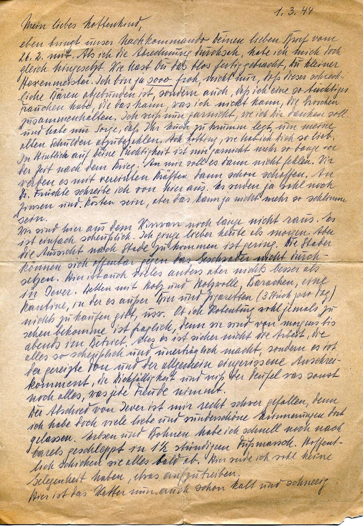 Harald Endemann an seine Frau Charlotte, 1. März 1944