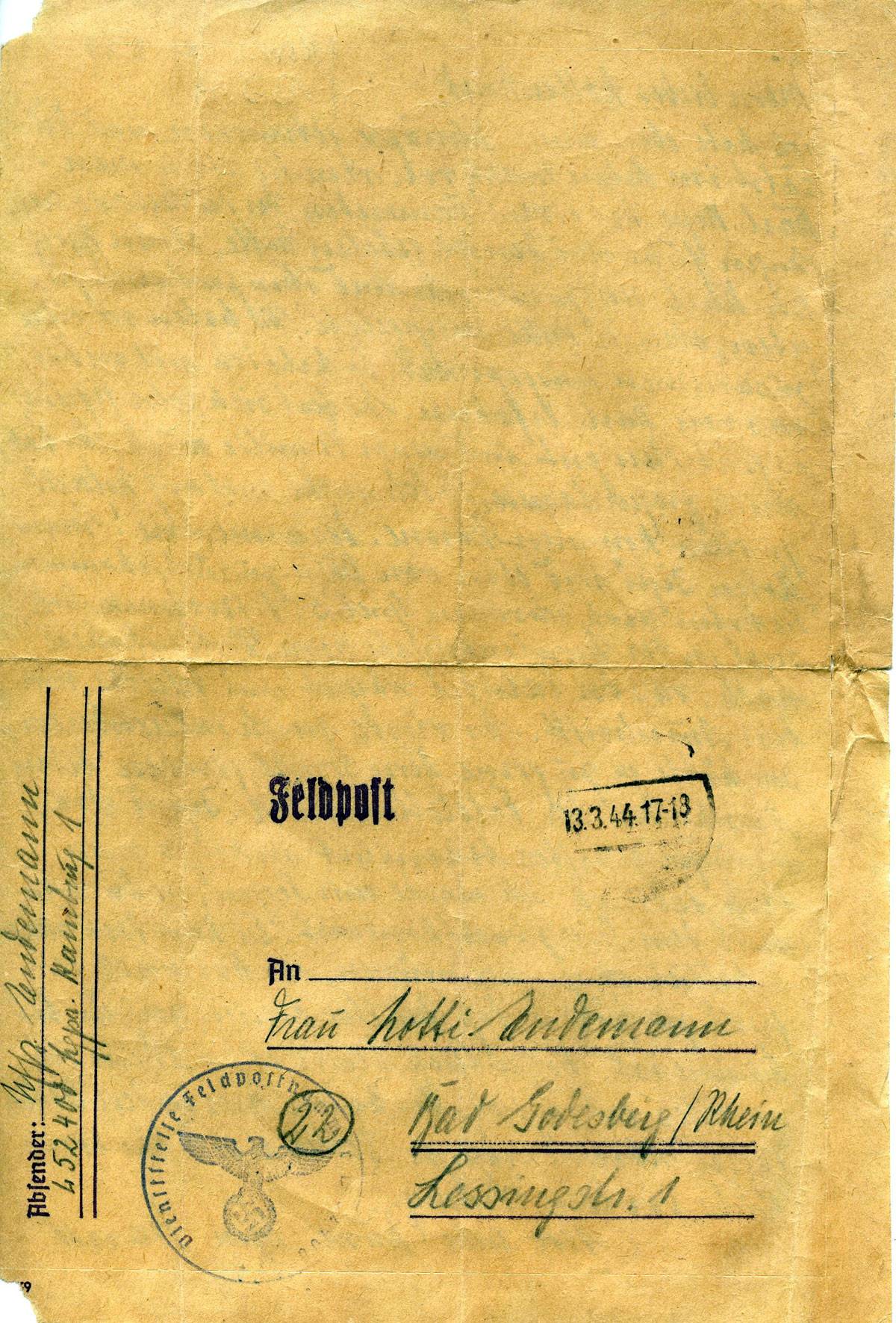 Harald Endemann an seine Frau Charlotte, 13. März 1944
