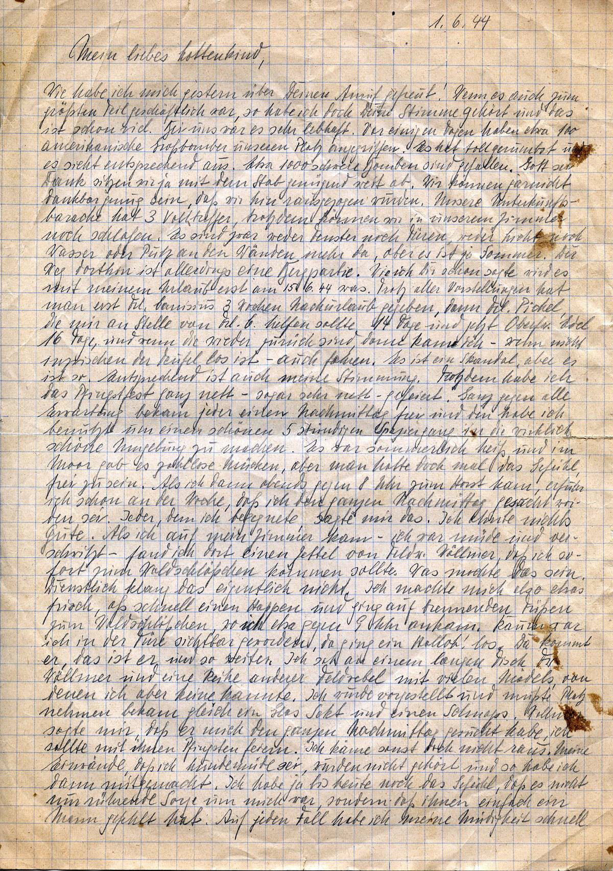 Harald Endemann an seine Frau Charlotte, 1. Juni 1944