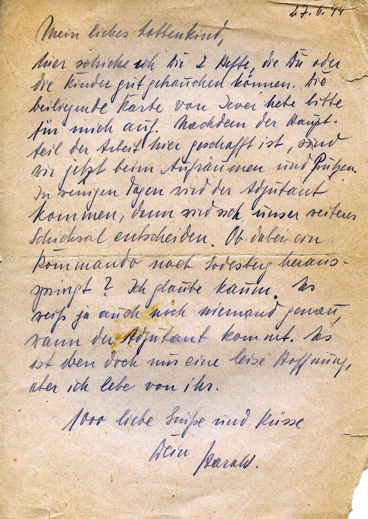 Harald Endemann an seine Frau Charlotte, 27. Juni 1944