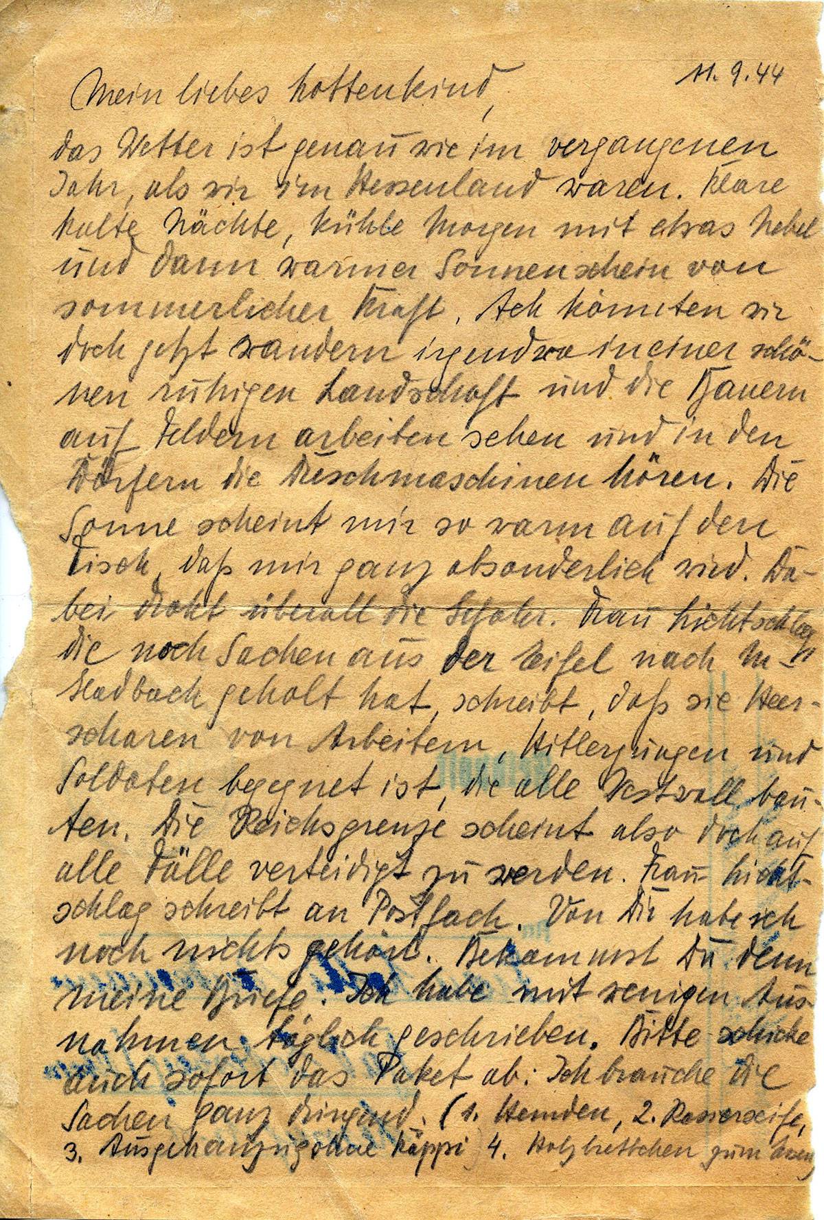 Harald Endemann an seine Frau Charlotte,11. September 1944
