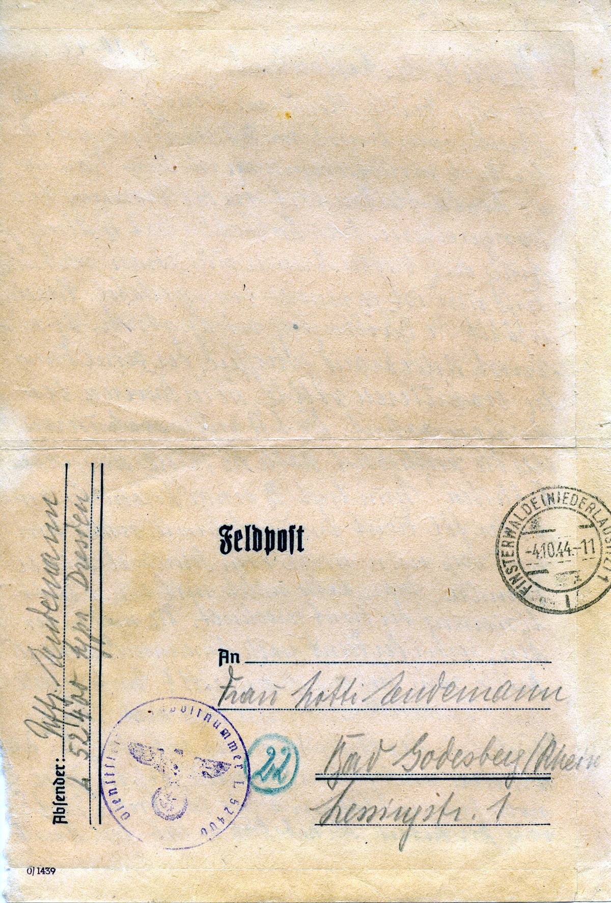 Harald Endemann an seine Frau Charlotte, 3. Oktober 1944