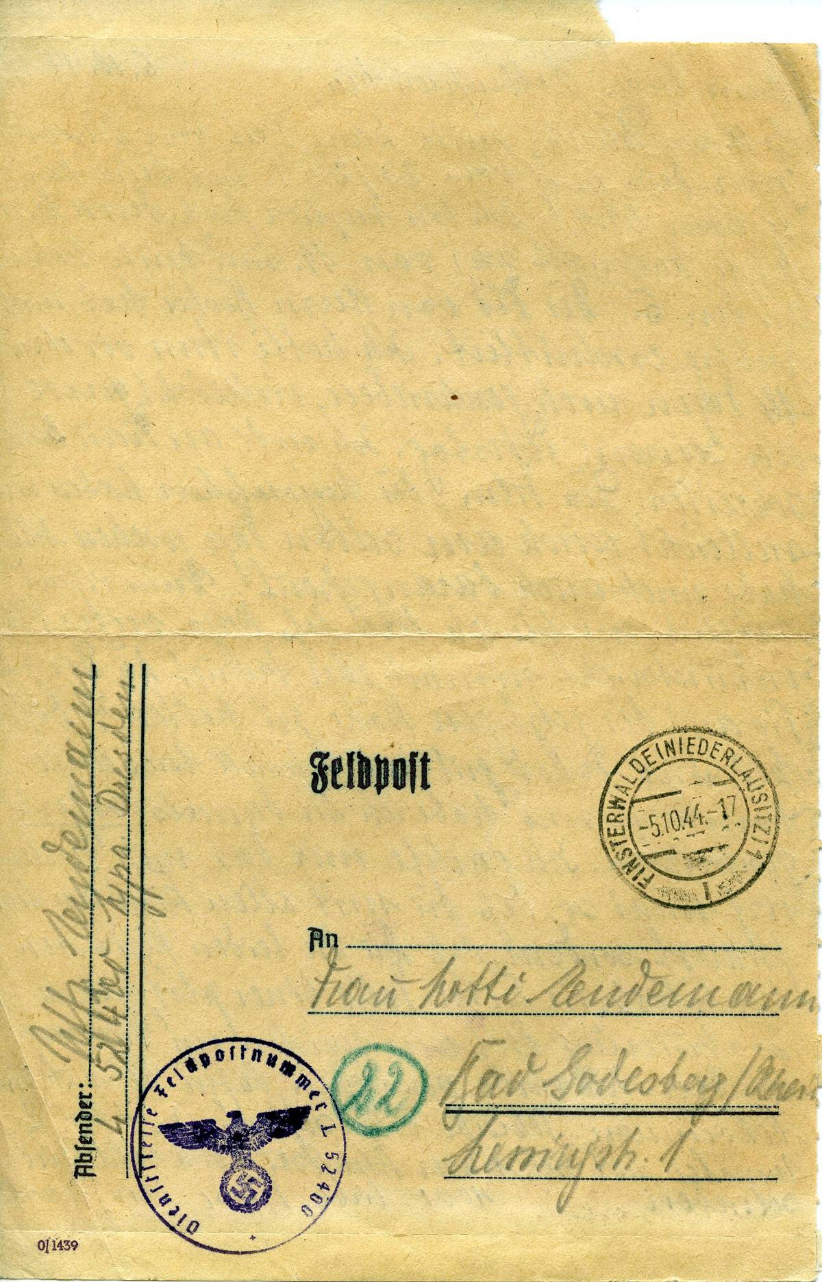 Harald Endemann an seine Frau Charlotte, 5. Oktober 1944