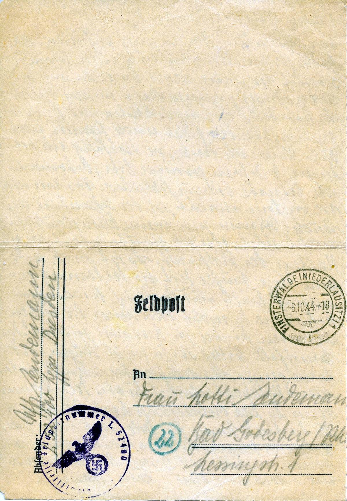 Harald Endemann an seine Frau Charlotte, 6. Oktober 1944