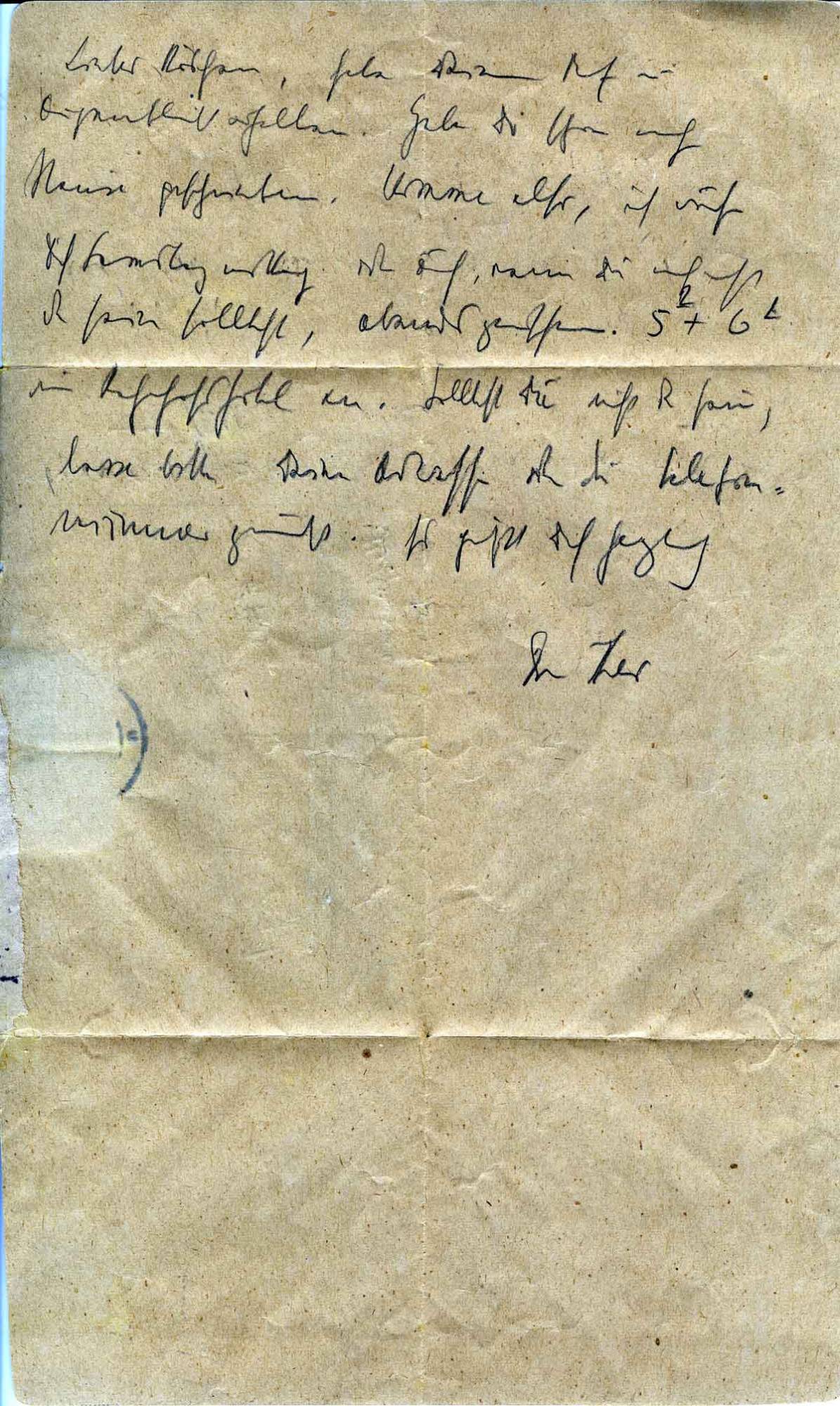 habe Deine Brief im Augenblick erhalten. Habe Dir schon nach Haus geschrieben. Komme also, ich rufe Dich Samstagmittag oder auch, wenn Du noch nicht da sein solltest, abends zwischen 5 und 6 Uhr im Bahnhofshotel an.