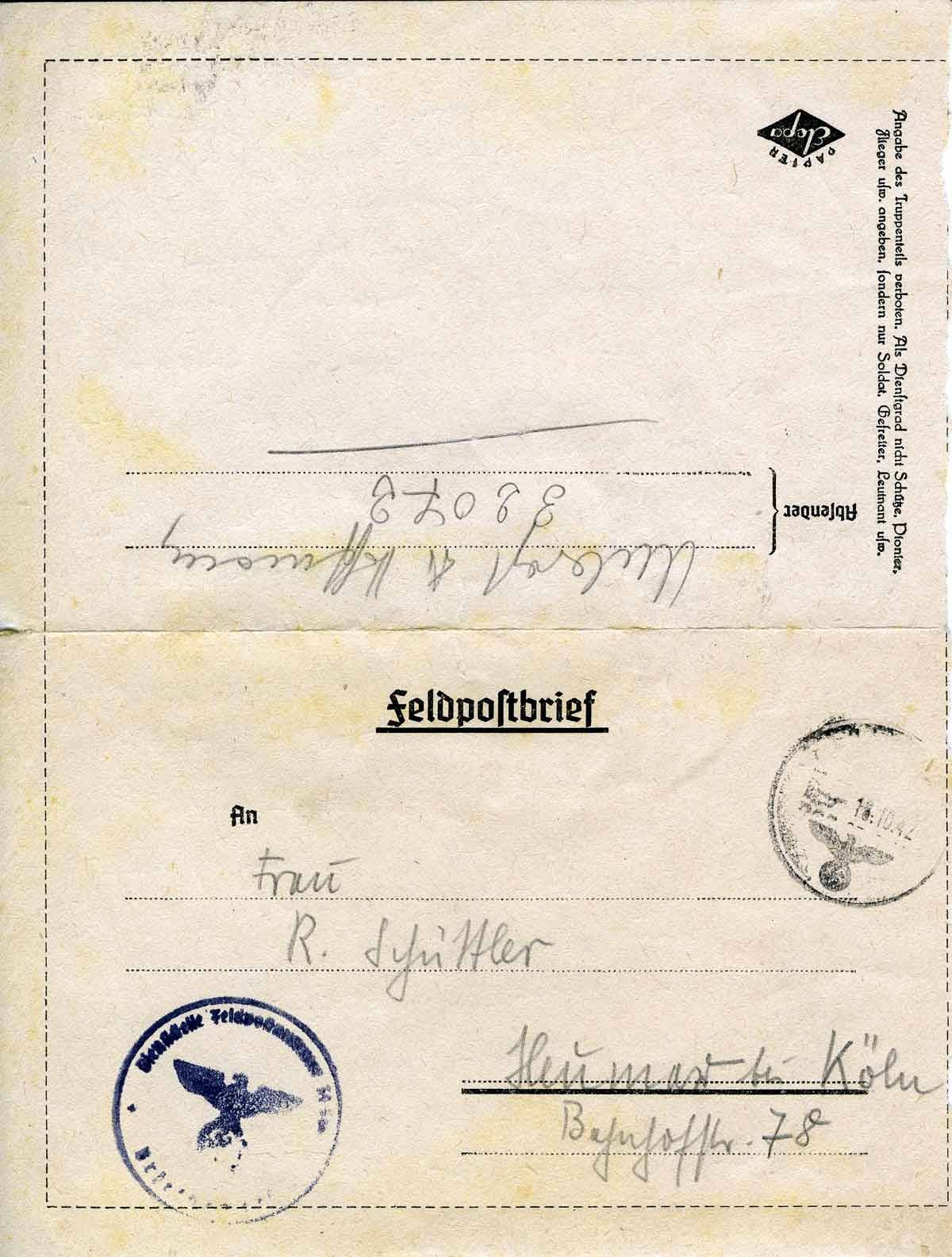 Theo Hoffmann an Freundin Rosalie Schüttler, 14. Oktober 1942