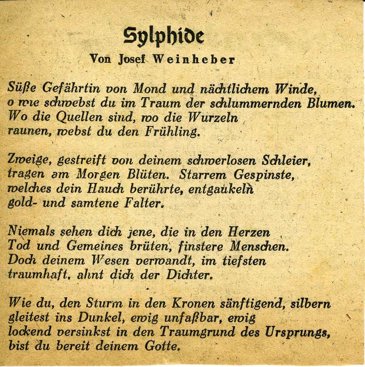 [Beigelegtes Gedicht aus einer Zeitung von Josef Weinhebe: „Sylphide“:]
