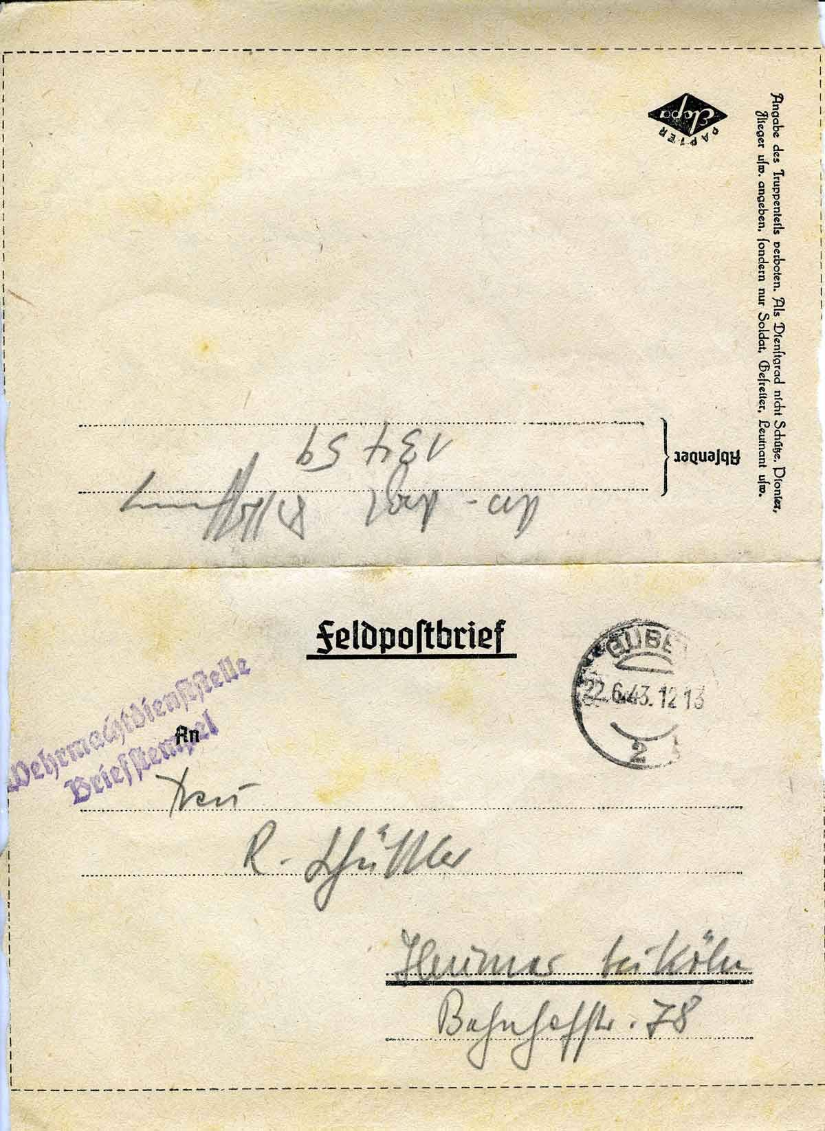 22.6.43 [Poststempel]