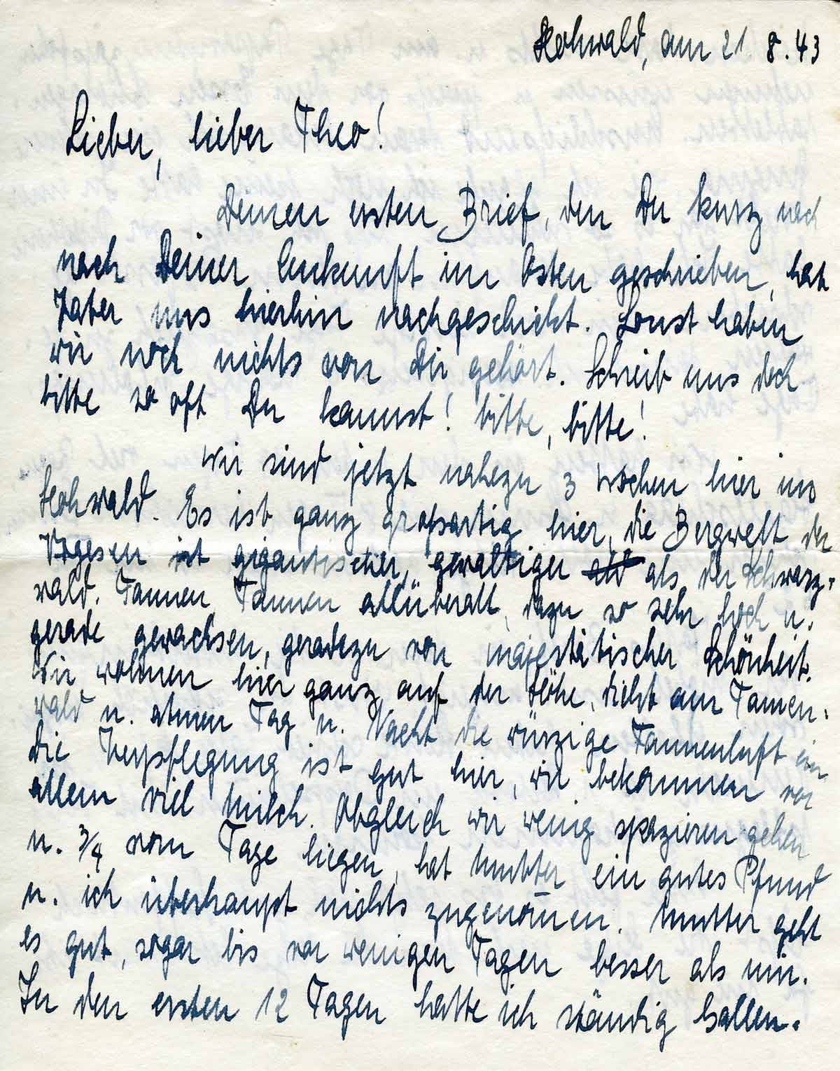 Josefa Hoffmann an ihren Bruder Theo, 21. August 1943