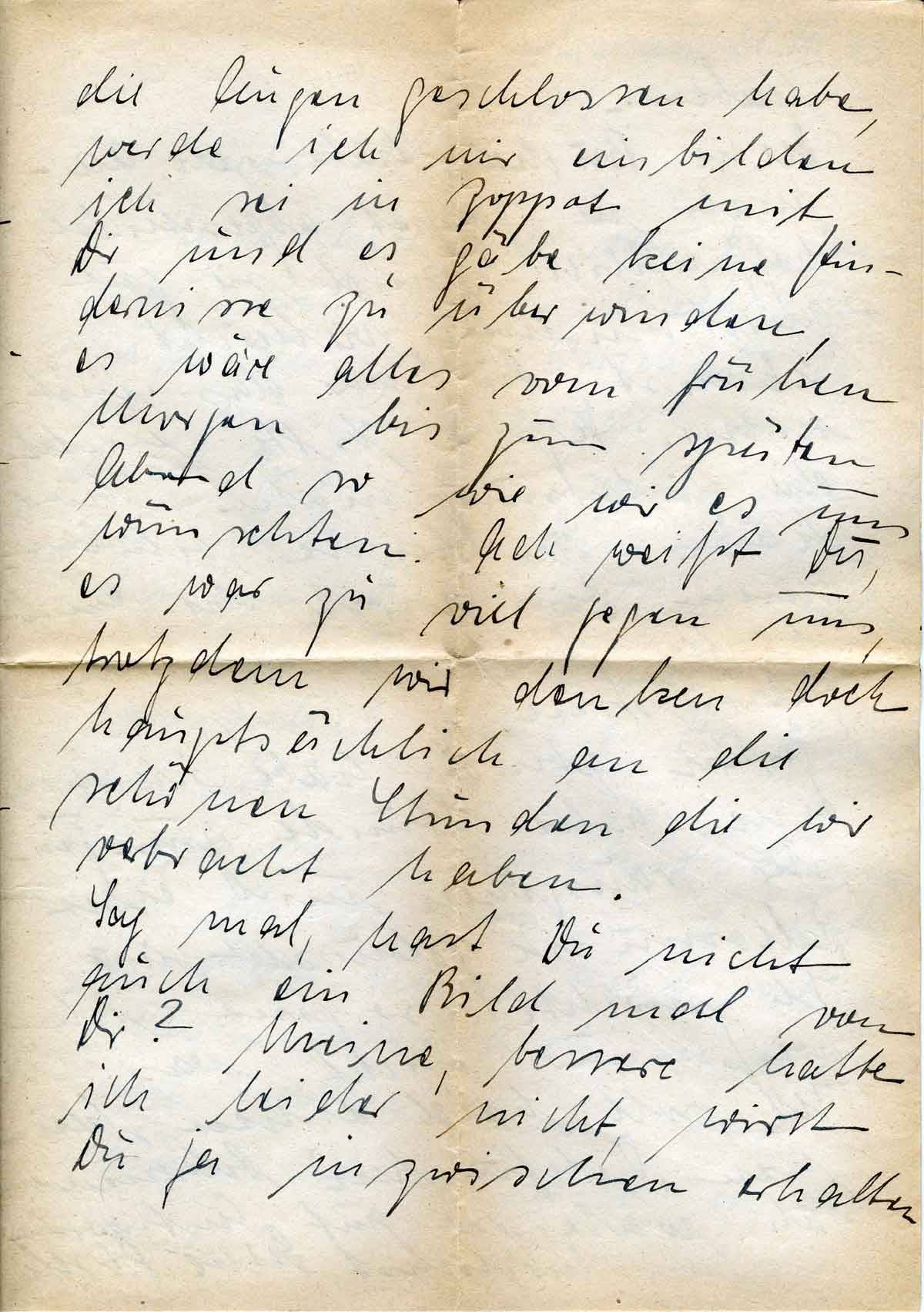 die Augen geschlossen habe, werde ich mir einbilden, ich sei in Zoppot mit Dir und es gäbe keine Hindernisse zu überwinden, es wäre alles vom frühen Morgen bis zum späten Abend so wie wir es uns wünschten. Ach weißt Du, es war zu viel gegen uns, trotzdem wir denken doch hauptsächlich an die schönen Stunden, die wir verbracht haben.