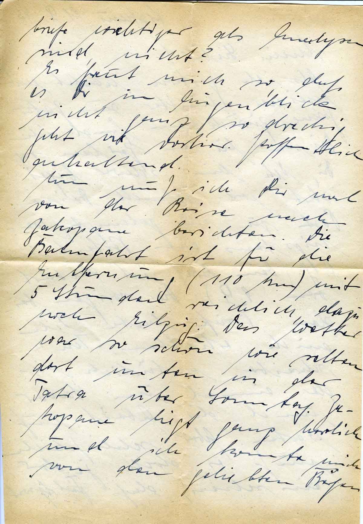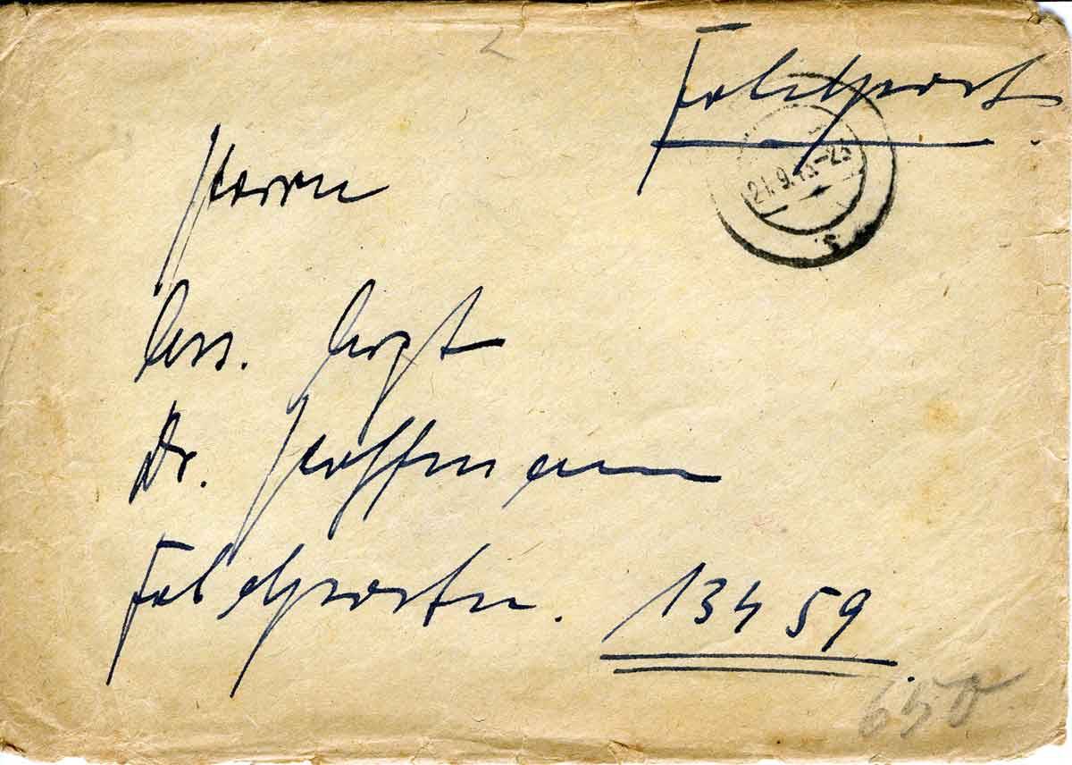 Als ich gestern nacht mit meiner Mutter aus Zakopane zurückkam, fand ich Deine lieben Zeilen vor. Du, ich bin schwer begeistert wie schnell Deine Post zu mir gelangt, wenigstens ein Vorteil im (...) (Dein Brief ist datiert vom 9.9.) Die vorigen beiden Briefe habe ich auch erhalten. Ich schreibe natürlich wieder einmal im Labor und die Arbeit muss warten.Aber schließlich muss es doch jeder einsehen, dass Feldpost-