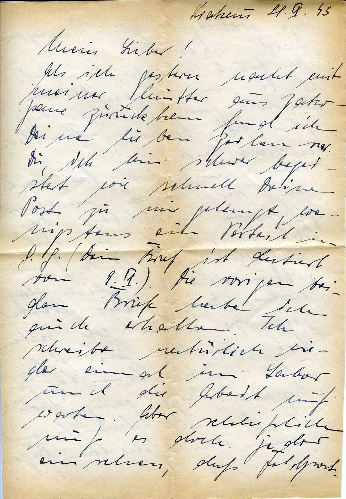 Gisela W. an Theo Hoffmann, 21. September 1943