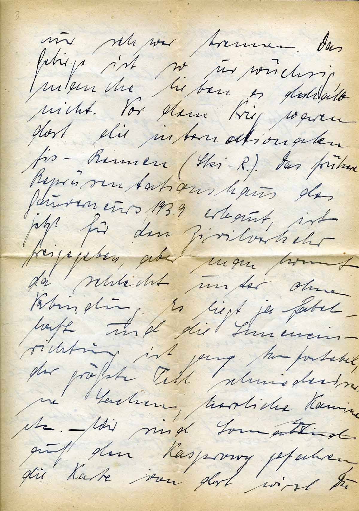 nur sehr schwer trennen. Das Gebirge ist so urwüchsig, manche lieben es deshalb nicht. Vor dem Krieg waren dort die internationalen fis-Rennen (Ski-Rennen). Das frühere Repräsentationshaus des Gouverneurs , 1939 erbaut, ist jetzt für den Privatverkehr freigegeben, aber man kommt da schlecht unter ohne Verbindung. Es öliegt ja fabelhaft und die Inneinrichtung ist ganz komfortabel, der größte Teil schmiedeeiserne Leuchten, herrliche Kamine etc. – Wir sind Sonntag auf den Kasprowy (?) gefahren, die Karte von dort wirst Du