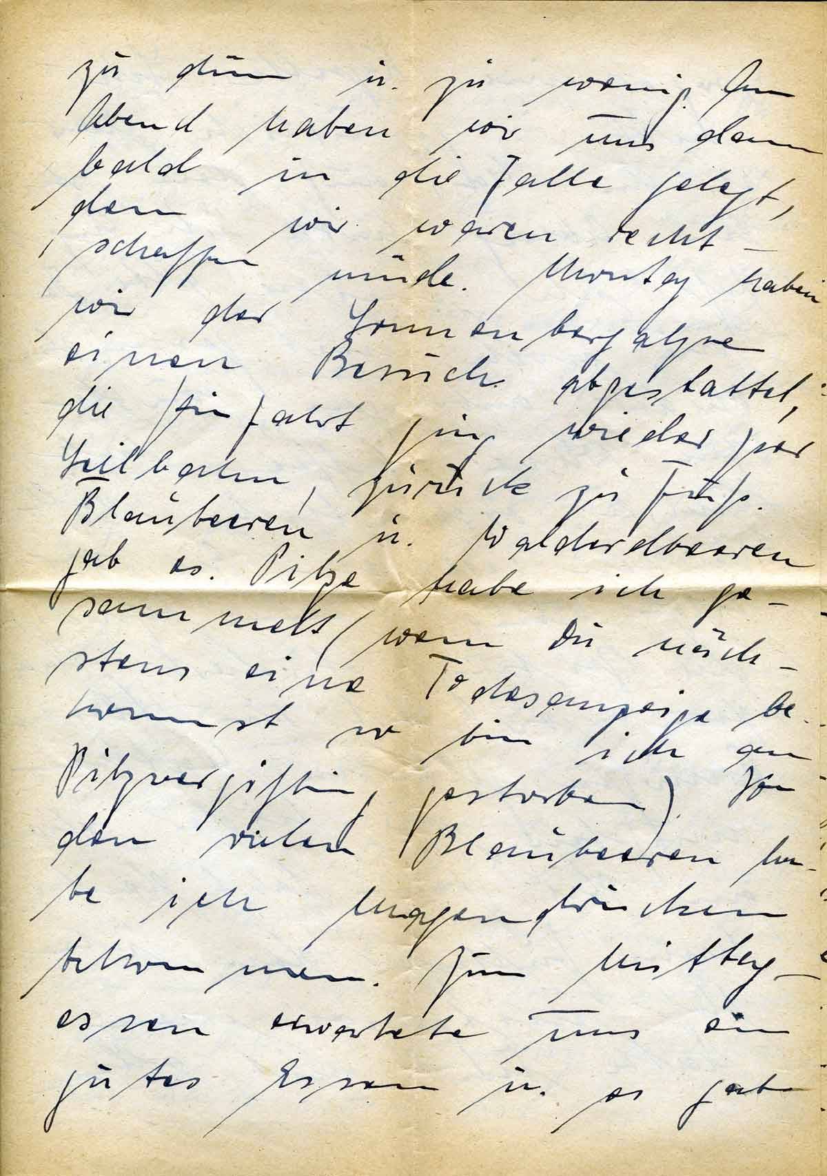 zu dünn und zu wenig. Am Abend haben wir uns dann bald in die Falle gelegt, denn wir waren rechtschaffen müde. Montag haben wir der Sonnenberg(...) eine Besuch abgestattet, die Hinfahrt ging wieder per Seilbahn, zurück zu Fuß. Blaubeeren und Walderdbeeren gab es. Pilze habe ich gesammelt ( wenn Du nächstens eine Todesanzeige bekommst, so bin ich an Pilzvergiftung gestorben) Von den vielen Blaubeeren habe ich Magendrücken bekommen. Zum Mittagessen erwartete uns ein gutes Essen und es gab