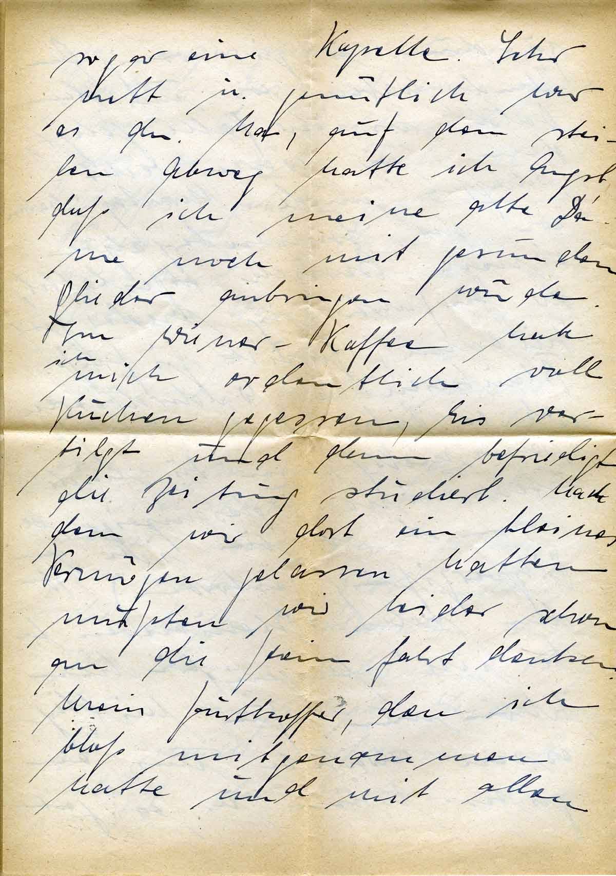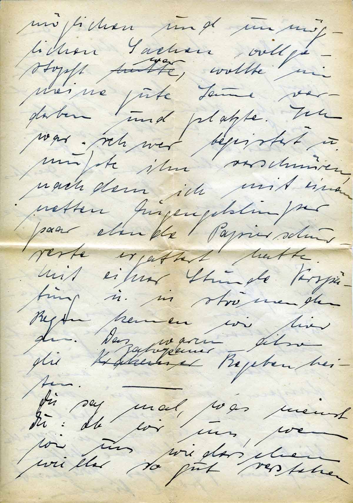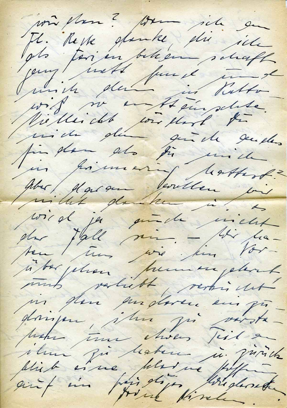 würden? Wenn ich an Frl. Reck denke, die ich als Ferienbekanntschaft ganz nett fand und mich dann in Kattowitz so enttäuschte. Vielleicht würdest Du mich dann auch anders finden als Du mich in Erinnerung hattest? Aber daran wollen wir nicht denken und es wird ja auch nicht der Fall sein. – Wir haben uns wie im Vorübergehen kennen gelernt, uns verliebt, versucht in den anderen einzudringen, ihn zu verstehen, um etwas Teil an ihm zu haben und zurück blieb eine kleine Hoffnung auf ein freudiges Wiedersehen.