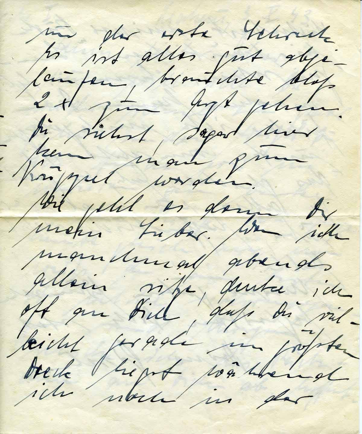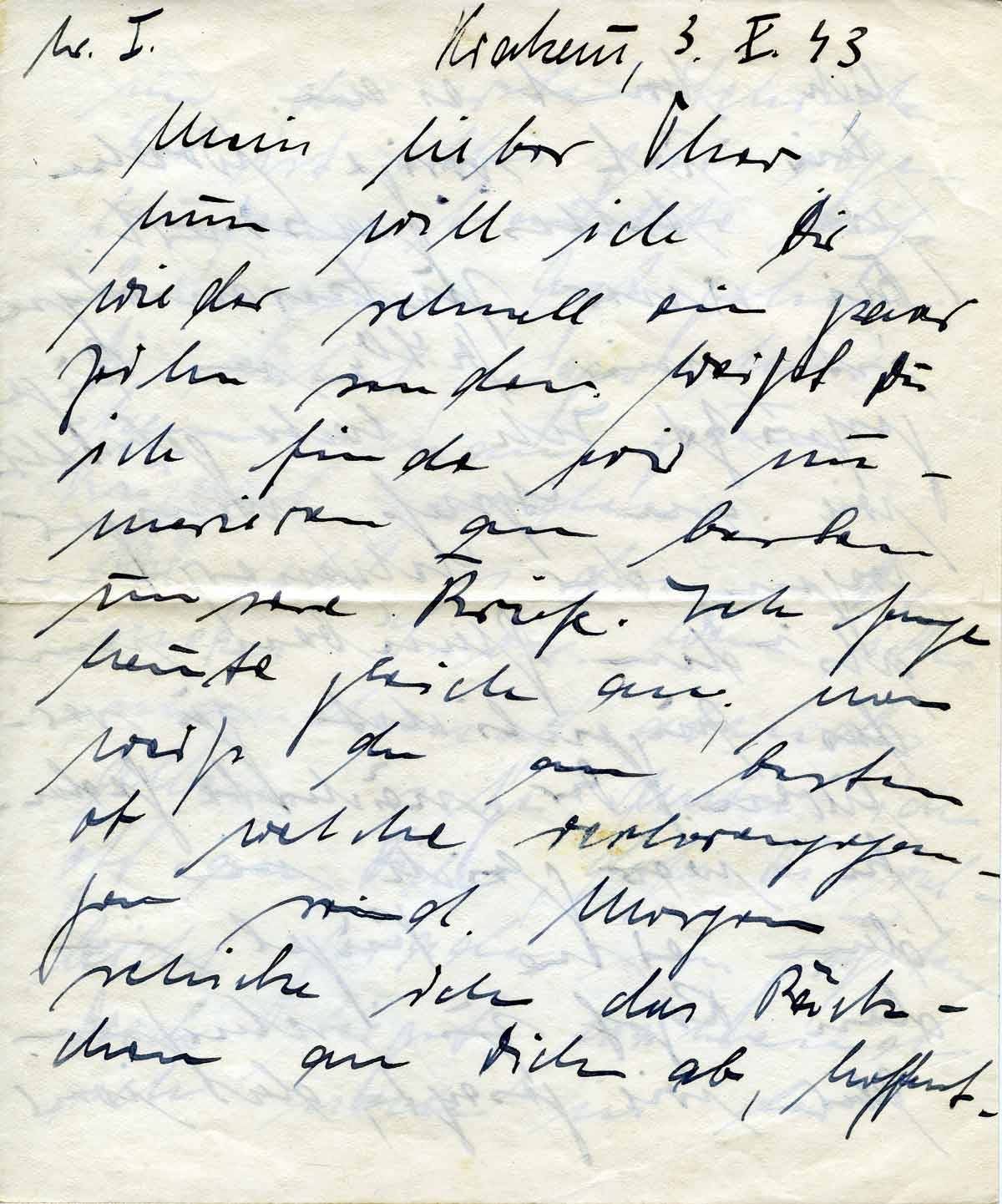 Nun will ich Dir wieder schnell ein paar Zeilen senden. Weißt Du, ich finde, wir nummerieren am besten unsere Briefe. Ich fange heute gleich an. Man weiß da am besten, ob welche verloren gegangen sind. Morgen schicke ich das Päckchen an dich ab, hoffent-