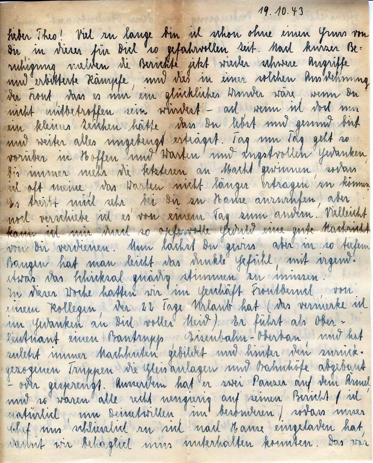 Rosalie Schüttler an Freund Theo Hoffmann, 19. Oktober 1943