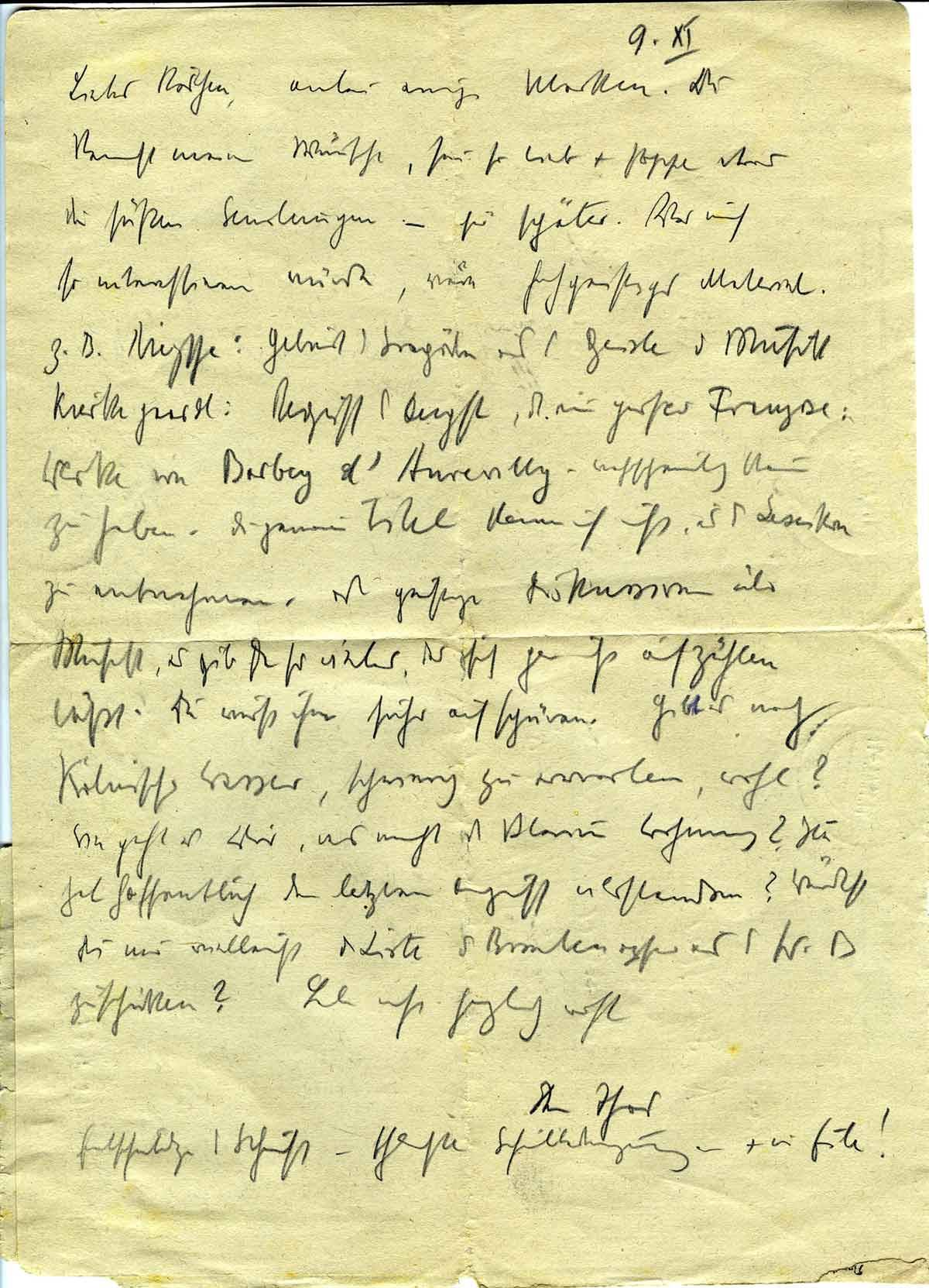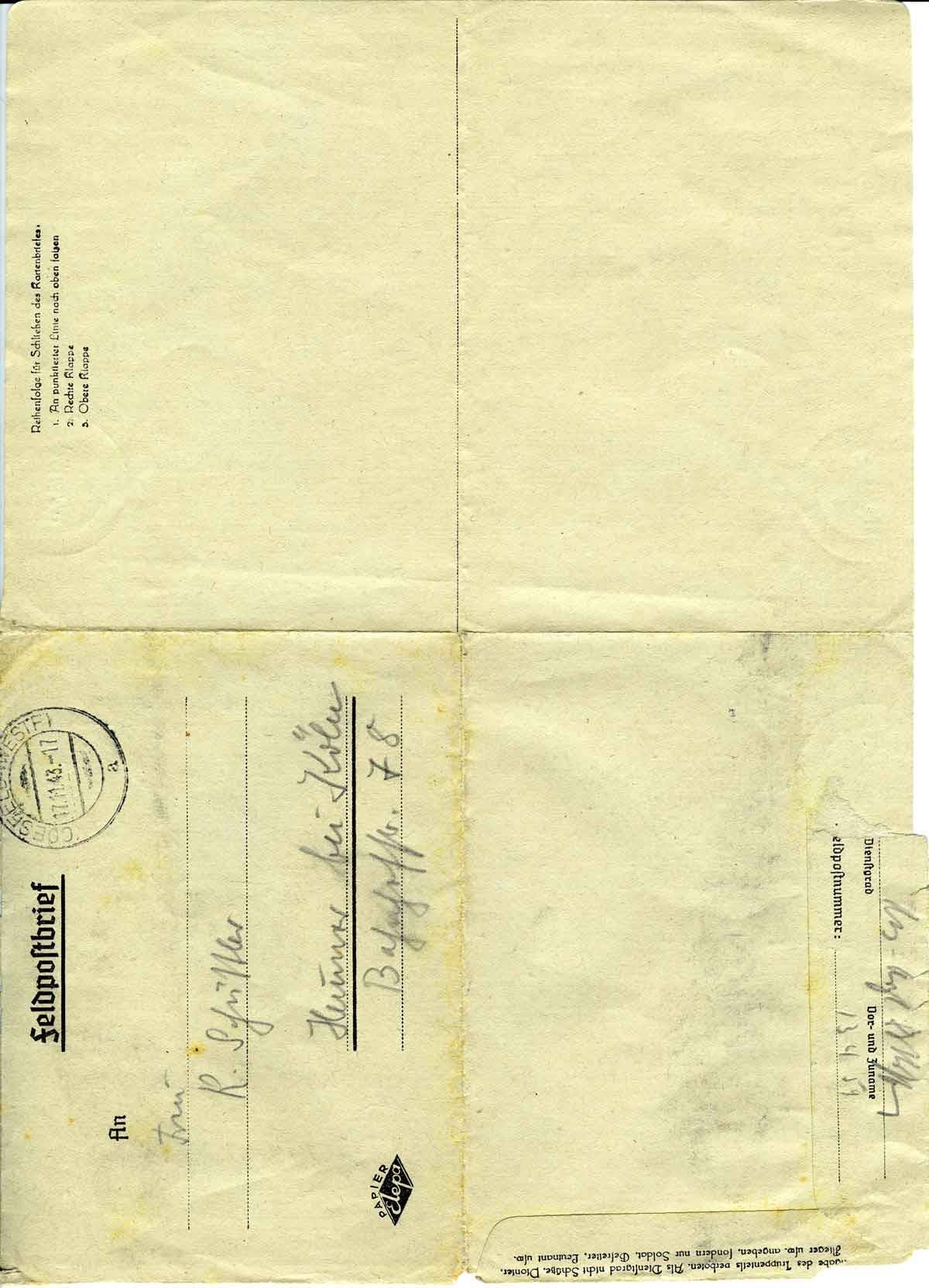 Wie geht es Dir, was macht die kleine Wohnung? Sie hat hoffentlich den letzten Angriff überstanden? Würdest Du mir vielleicht die Liste der Bombenopfer aus dem Westdeutschen Beobachter zuschicken?