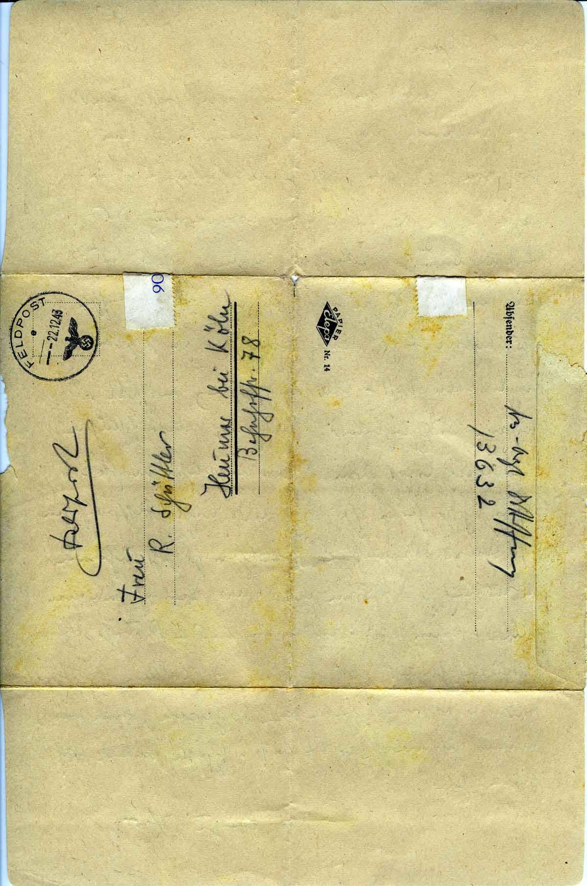 Theo Hoffmann an Freundin Rosalie Schüttler, 22. Dezember 1943