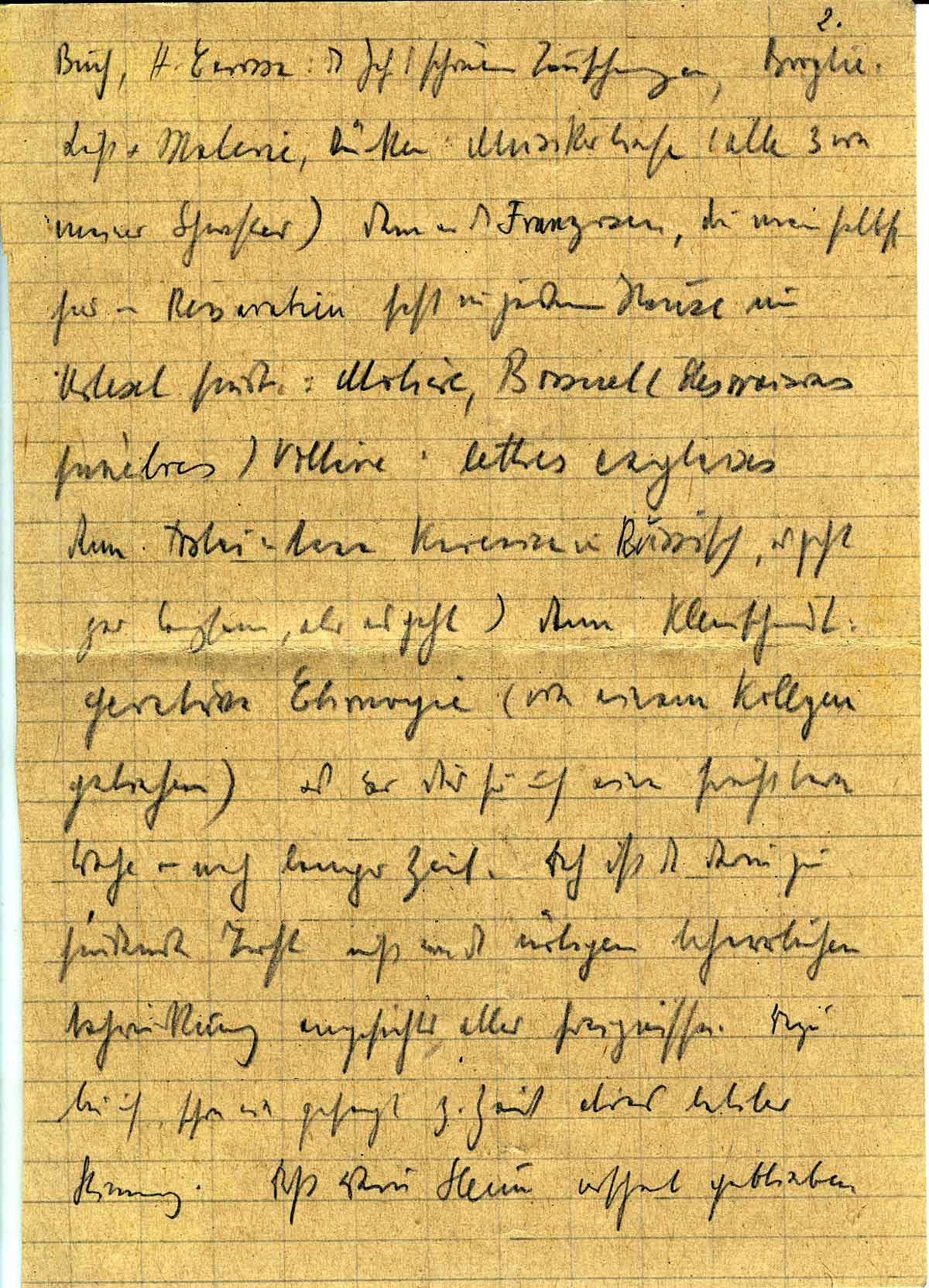 Bücker: Musikerbriefe (alle drei von meiner Schwester) , dann auch Franzosen, die man selbst hier in Bessarabien fast in jedem Hause im Urtext findet: Molière, Voltaire ...