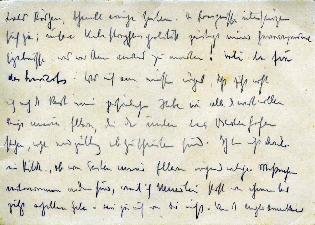 Was mich am meisten ärgert, dass jetzt wohl auch noch der Rest meiner persönlichen Habe wie alle die wertvollen Dinge meiner Eltern, die da unten bei Niedenhafen stehen, wohl endgültig abzuschreiben sind. Ich bin nicht darüber im Bilde, ob von Seiten meiner Eltern irgendwelche Maßnahmen unternommen worden sind, weil ich keinerlei Post von ihnen bis jetzt erhalten habe – wie ja auch von Dir nicht. Wenn die Anglo-Amerikaner