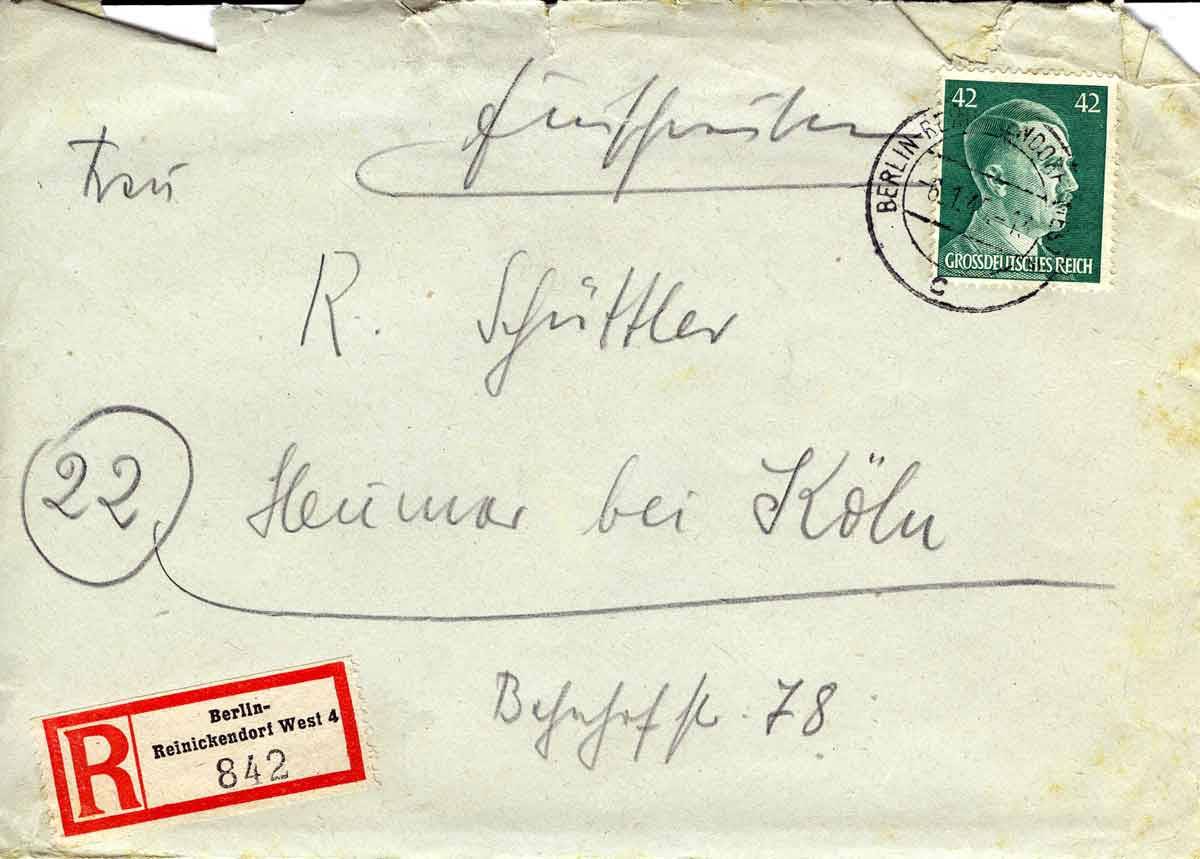 wieder bin ich in dauernder Unruhe um Köln, um mein Elternhaus. Es wird jetzt sicher das Unglück über sie hereingebrochen sein, ich kann es mir nicht vorstellen, dass sie noch einmal bei den dauernden Angriffen verschont geblieben sind. Und Du, liebes Röschen? Steht unser nettes Häuschen noch, in dem wir so viele schöne Stunden, vielleicht die letzten in dieser Vollendung erlebt haben? Deinen lieben, langen Brief und die Telegramme habe ich erhalten. Ich erhielt alles zusammen nach (---).Aber was ist nicht noch alles in dieser Zeit passiert! Man schleppt sich, Zusicherungen