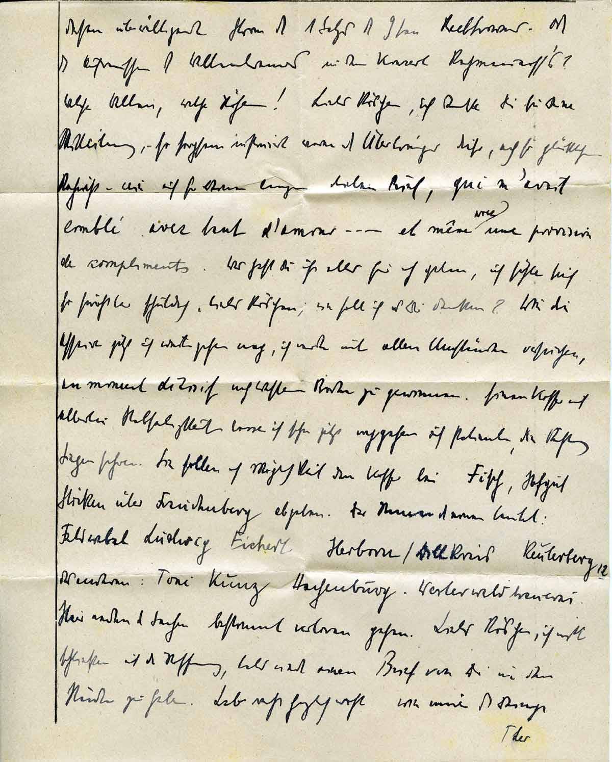 Liebes Röschen, ich will schließen in der Hoffnung, bald wieder einen Brief von Dir in den Händen zu halten.