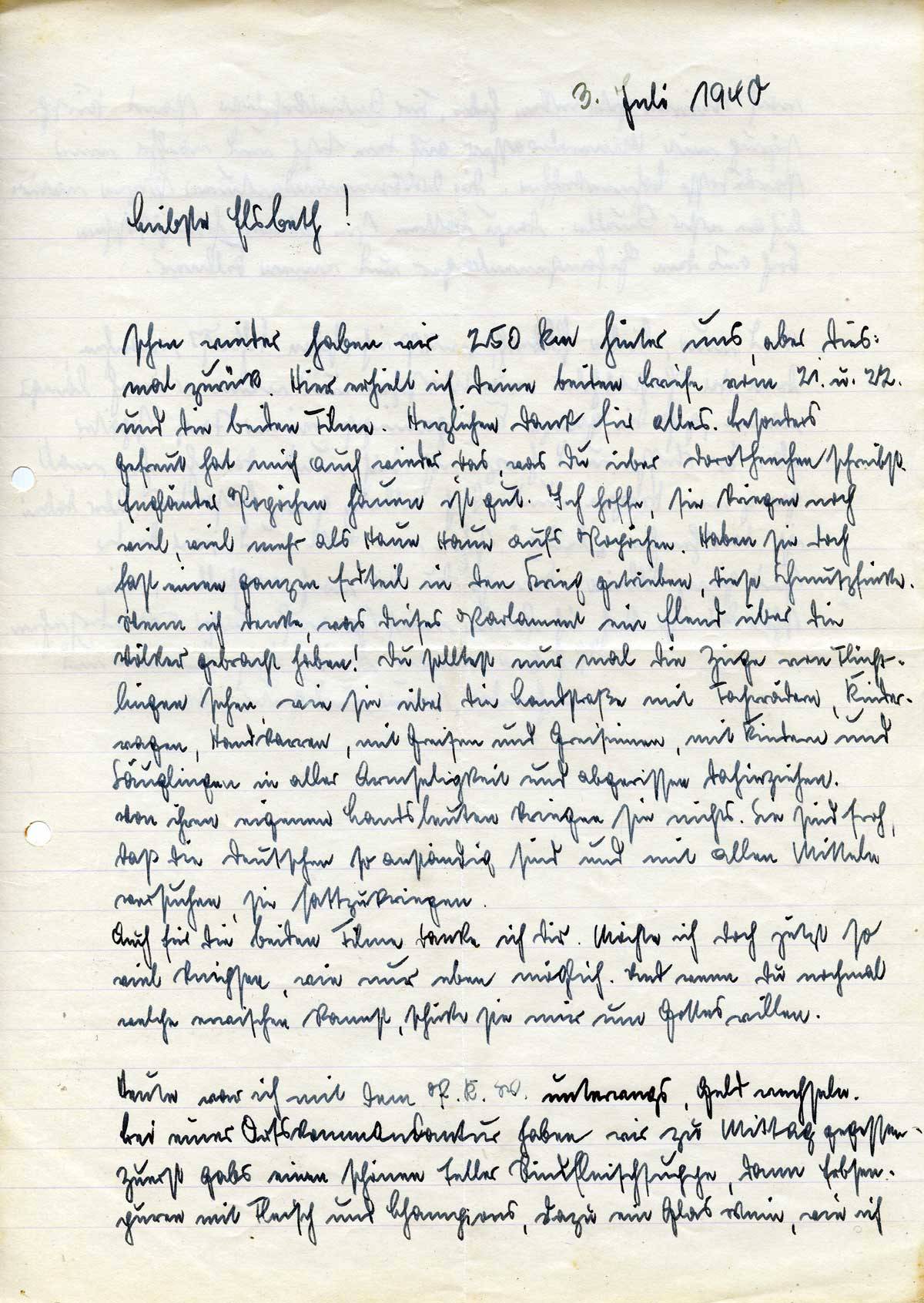 Johannes Ließem an seine Frau Elsbeth, 3. Juli 1940