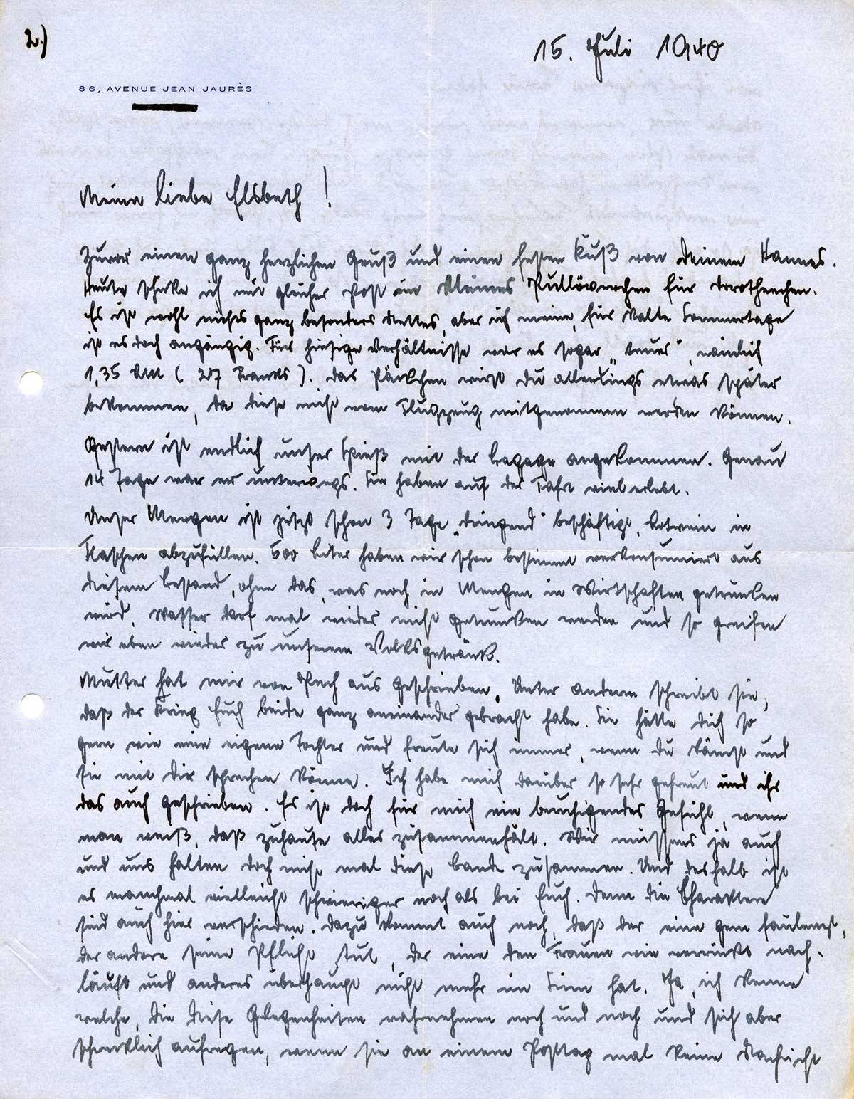 Johannes Ließem an seine Frau Elsbeth, 15. Juli 1940