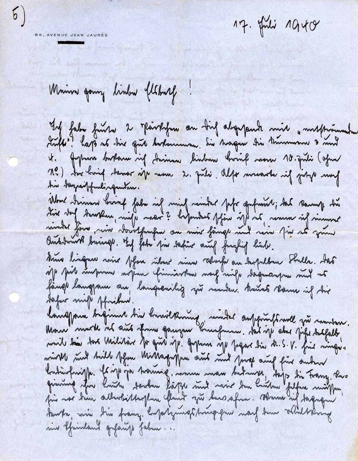 Johannes Ließem an seine Frau Elsbeth, 17. Juli 1940