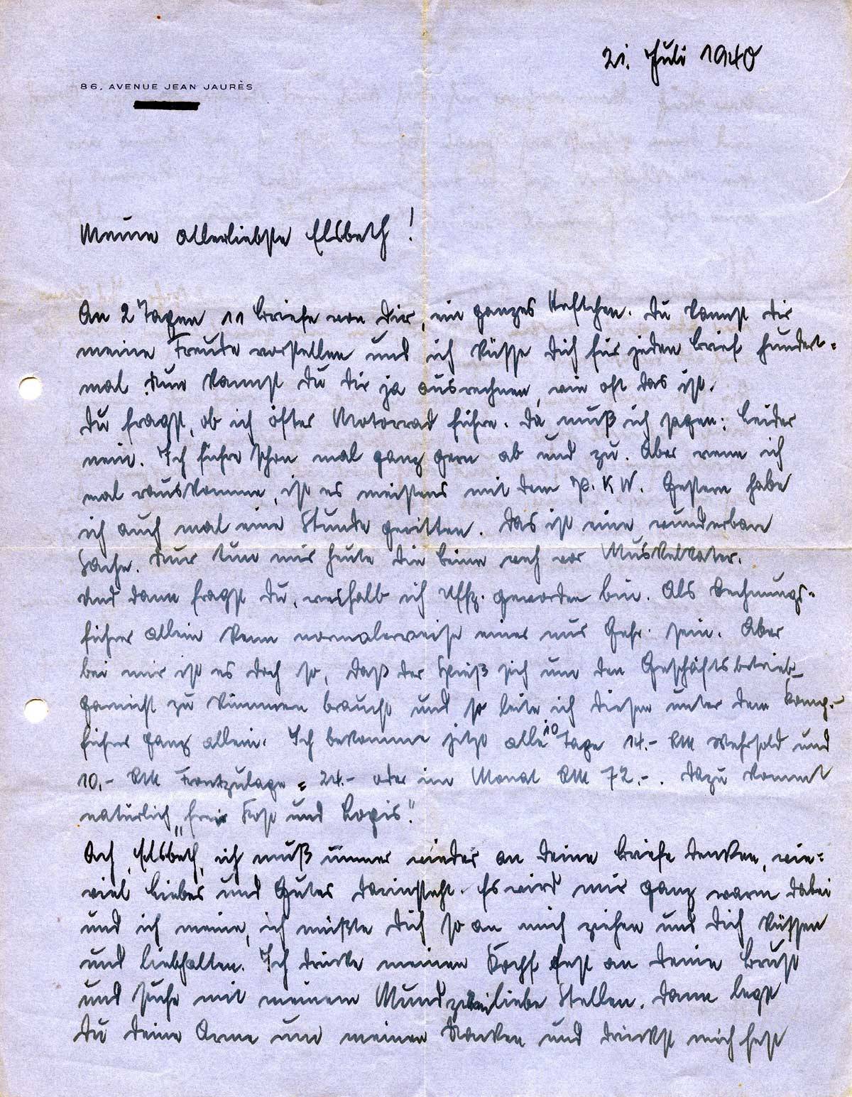 Johannes Ließem an seine Frau Elsbeth, 21. Juli 1940