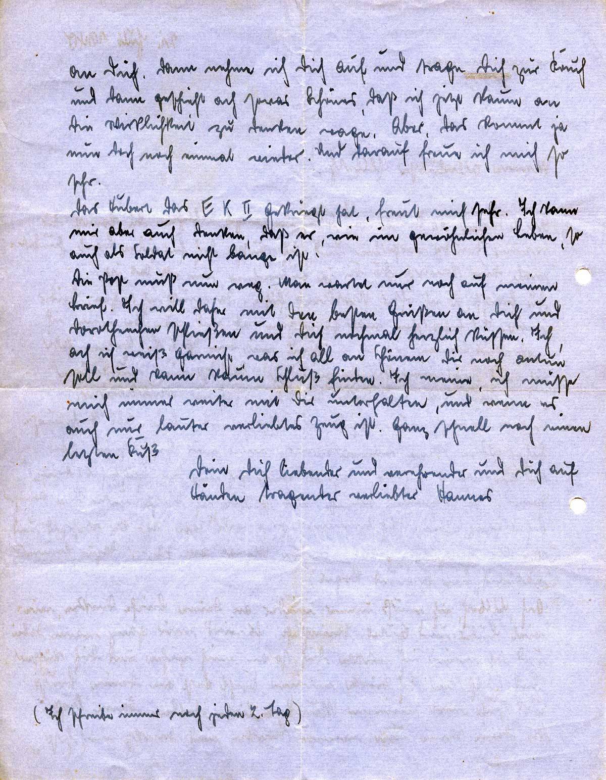 An 2 Tagen 11 Briefe von Dir, ein ganzes Heftchen. Du kannst Dir meine Freude vorstellen und ich küsse Dich für jeden Brief hundertmal. Nun kannst Du Dir ja ausrechnen, wie oft das ist.