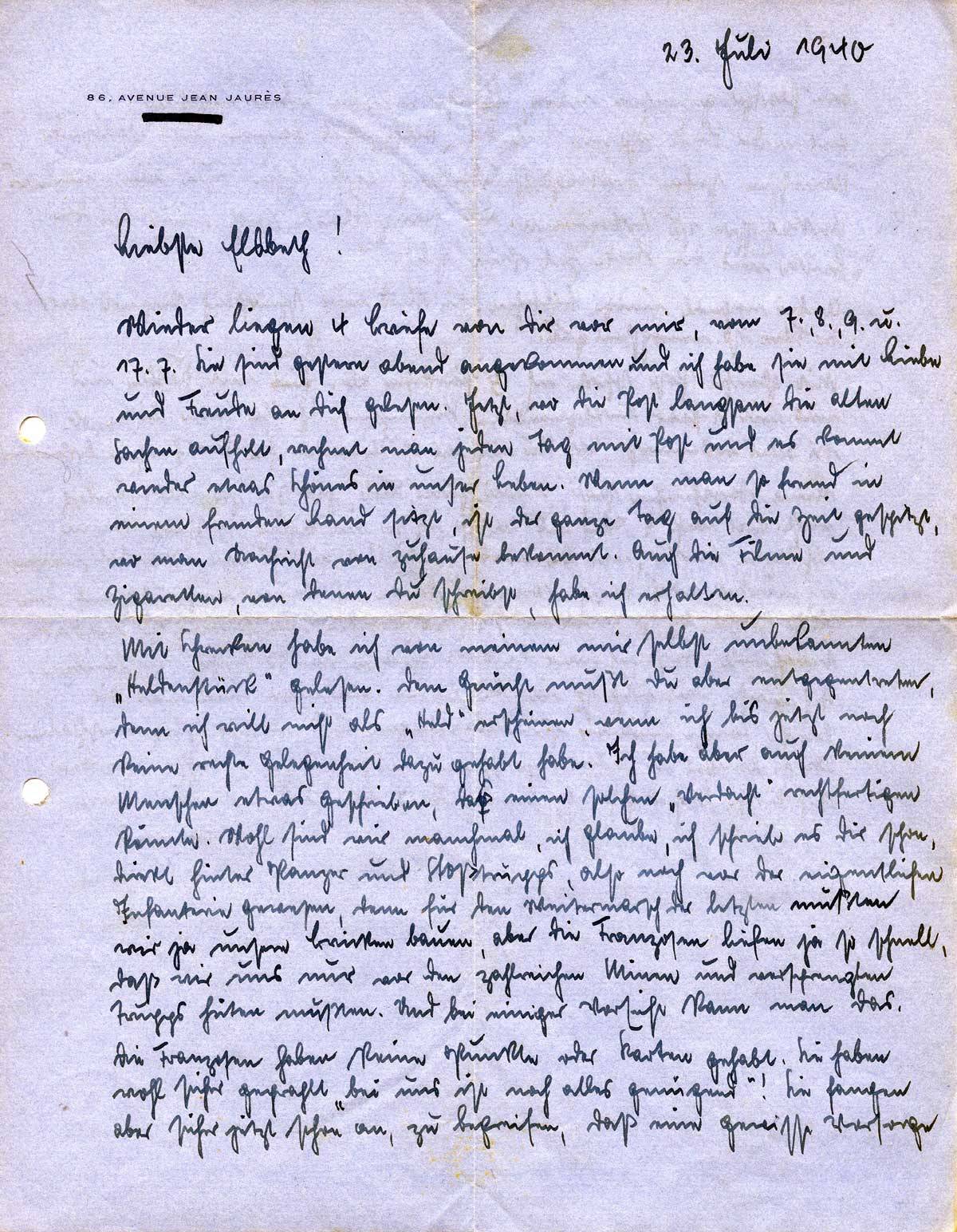 Johannes Ließem an seine Frau Elsbeth, 23. Juli 1940